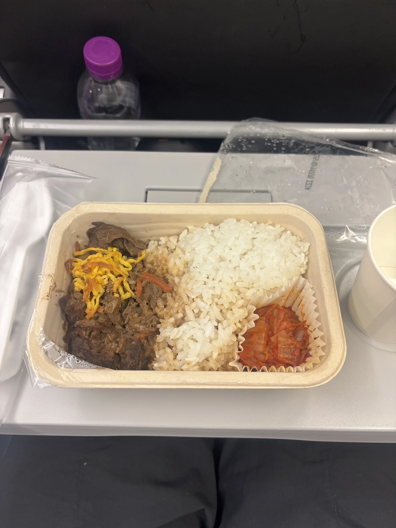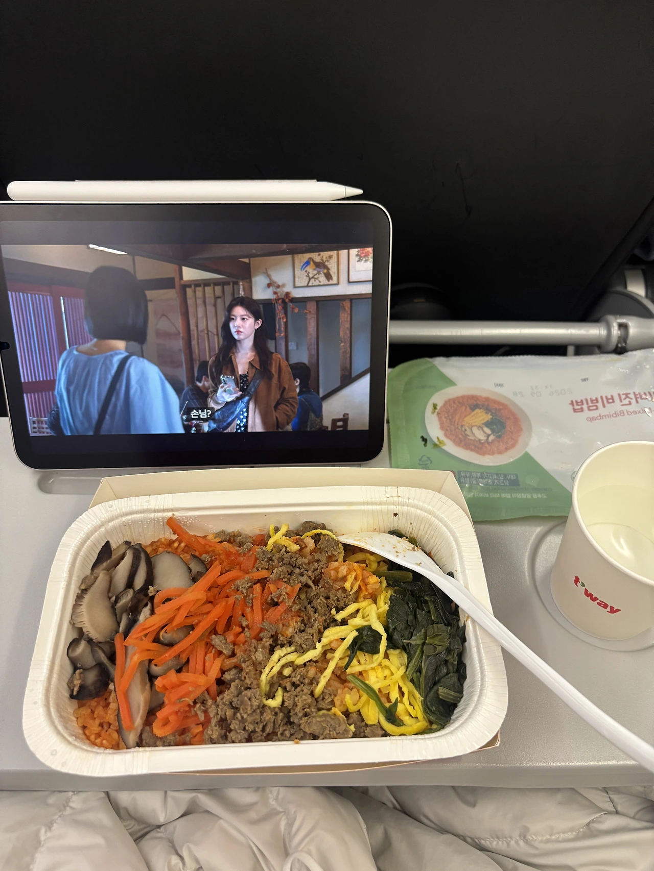 떠지지도 않는 눈을 비비며 기내식을 다시 한번 욱여넣었다.