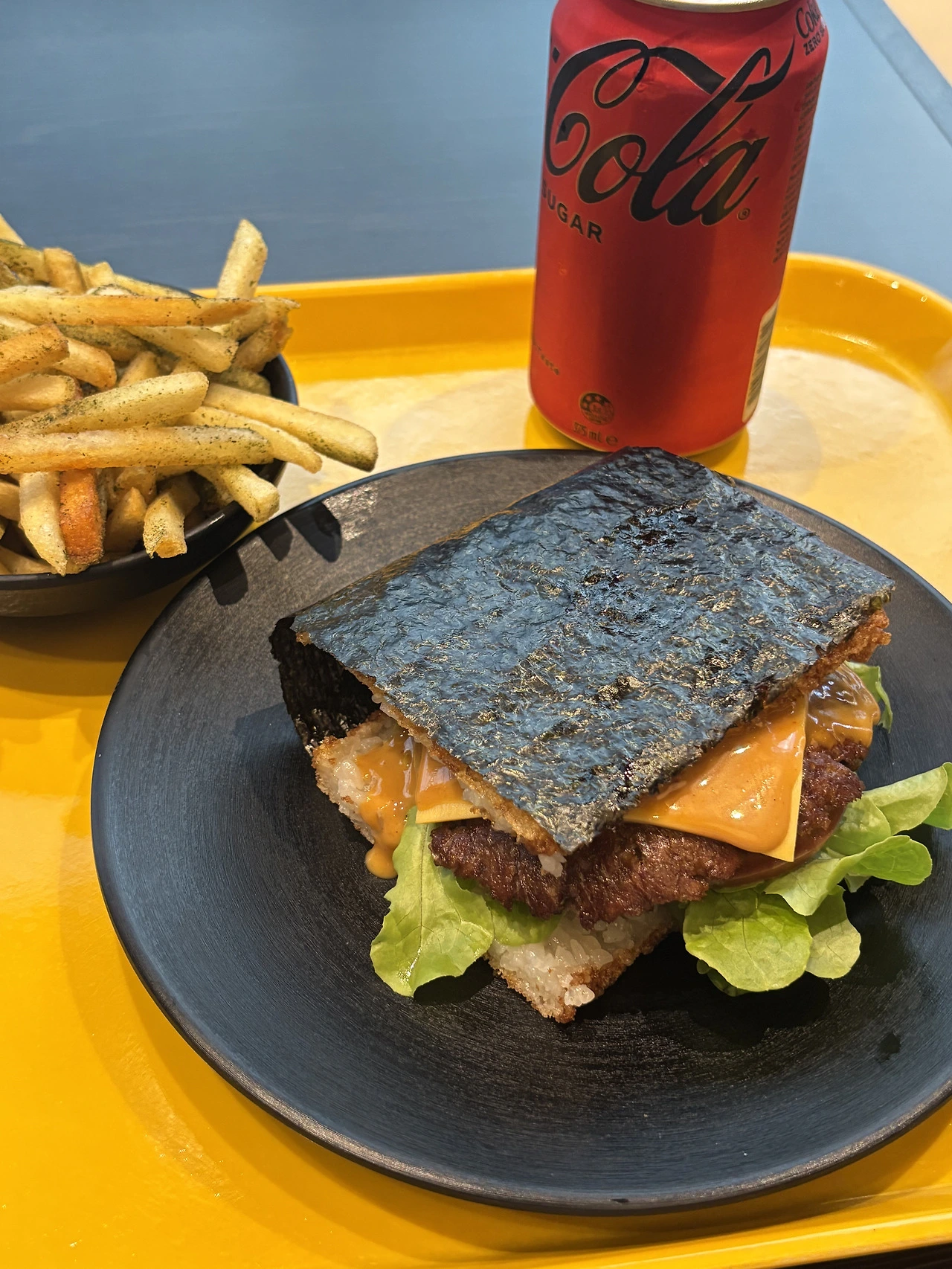 누룽지 밥 사이에 얹어진 소고기 패티와 야채, 그리고 치즈가 생각보다 너무 잘 어울렸고, 겉을 싸고 있는 김이 그 버거에 특별함을 더해주었다.