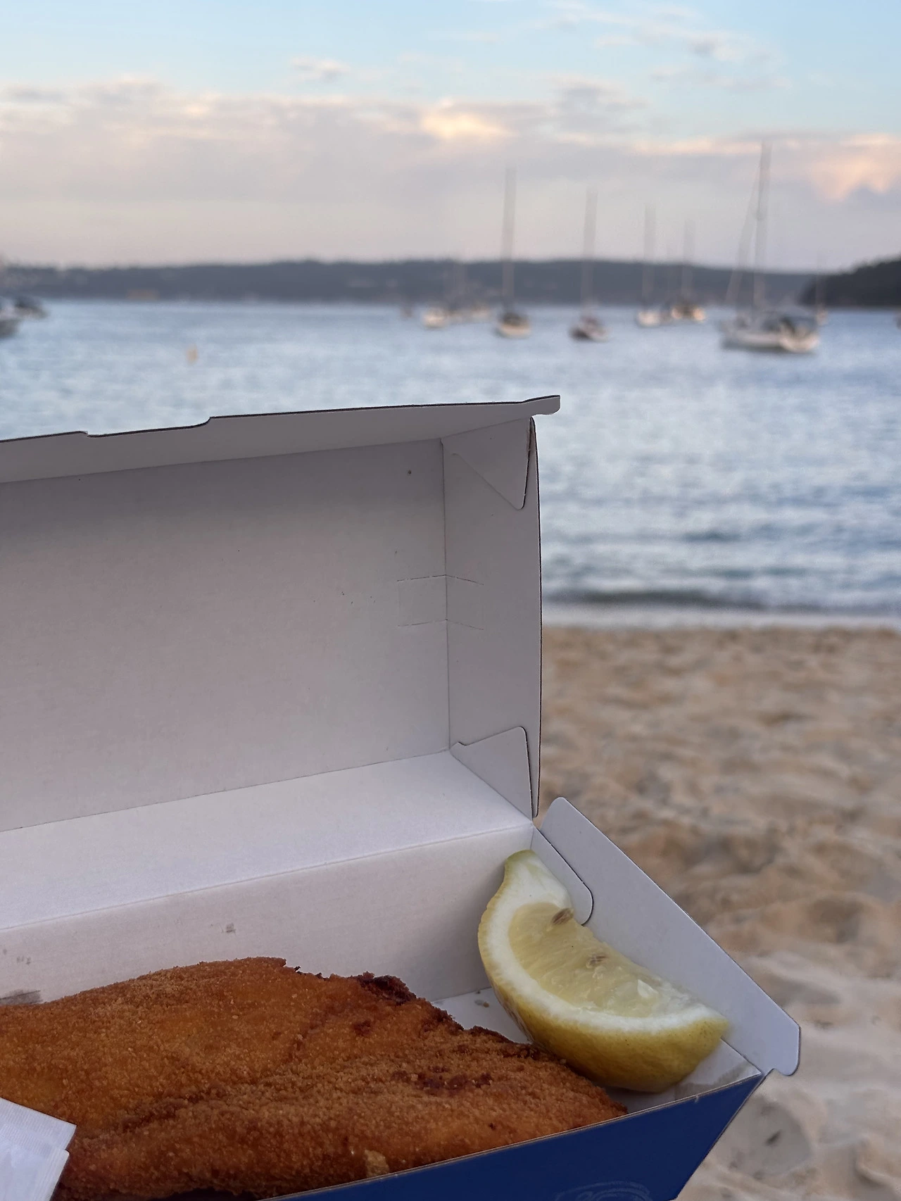 그렇게 노을이 지는 시간이 다가올 때 즈음 나는, 잠시 근처 피쉬앤칩스 맛집에 방문해 간단한 Crumbed fish와 수제 Orange juice를 시켜 다시 비치에 자리했다.