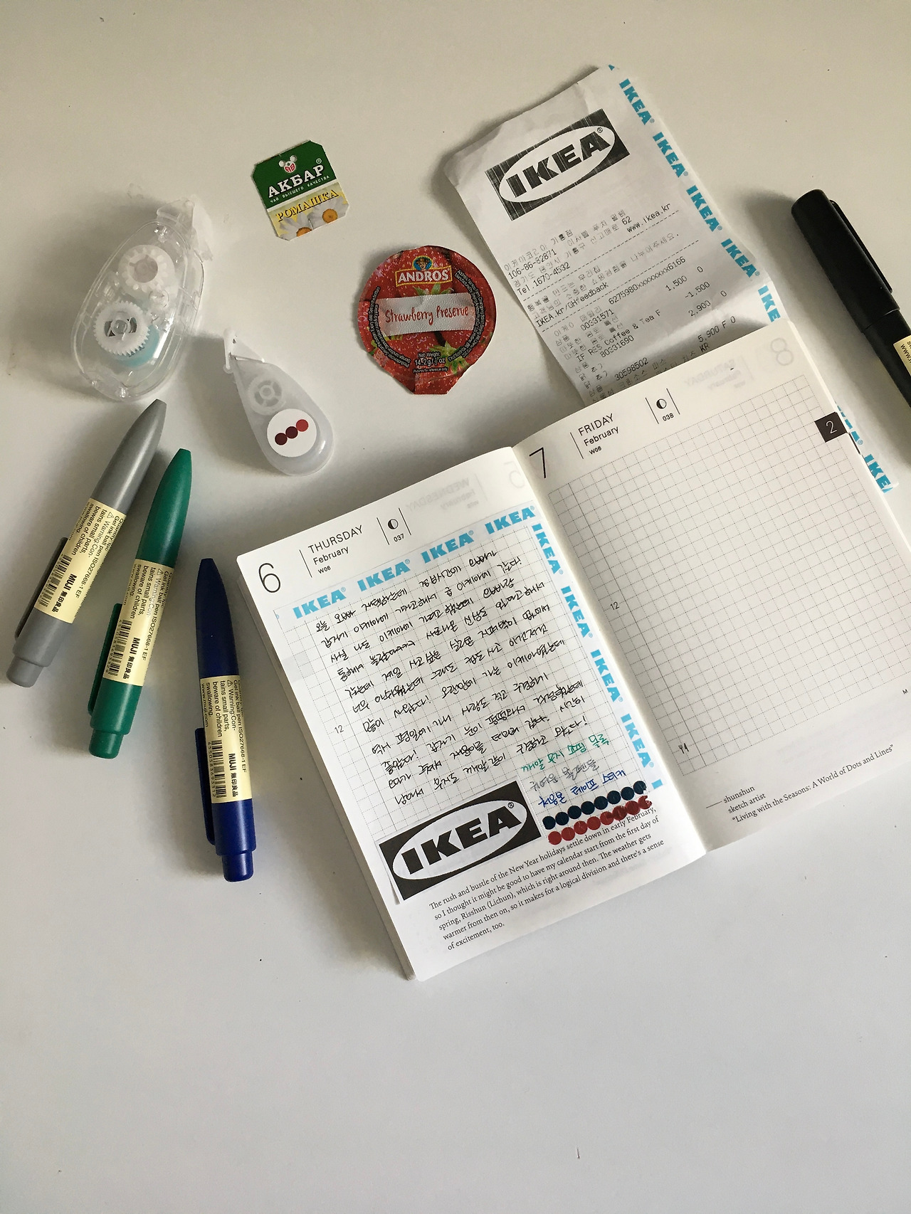 스타벅스 핑크색 다이어리엔 나의 모든 것이 기록되어 있다. 기분이 나쁘면 나쁜 대로, 좋으면 좋은 대로. 글씨만 잔뜩 있는 날 것의 다이어리이다. 그래서 그런지 제일 늦게 샀지만 손이 더 많이 가는 다이어리가 되었다.