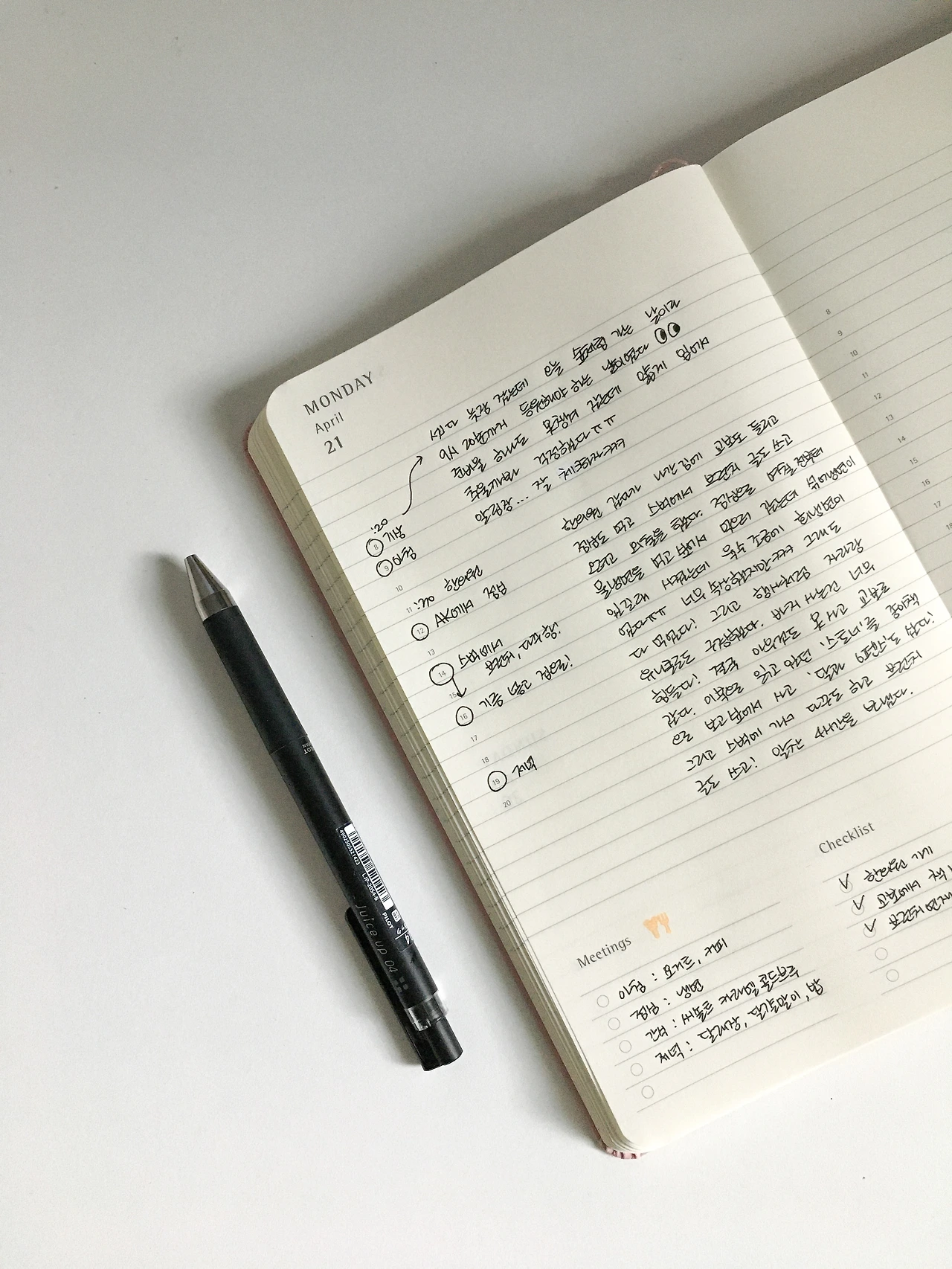 벌써 5월인 지금. 다른 때와는 다르게 꾸준히 다이어리를 쓰고 있다. 물론 밀리기도 하고 비워진 부분도 많았지만 비워진 부분에 크게 연연하지 않고 매일 오늘의 일기를 써 내려가고 있다. 다꾸용 데일리 다이어리 하나만 있었는데 지금은 다이어리만 4개가 되었다. 나름 각각 다꾸용, 아침일기용, 감정일기, 체크리스트용으로 용도를 나누어 사용하고 있는데 매일 기록하는 시간이 너무 좋다.