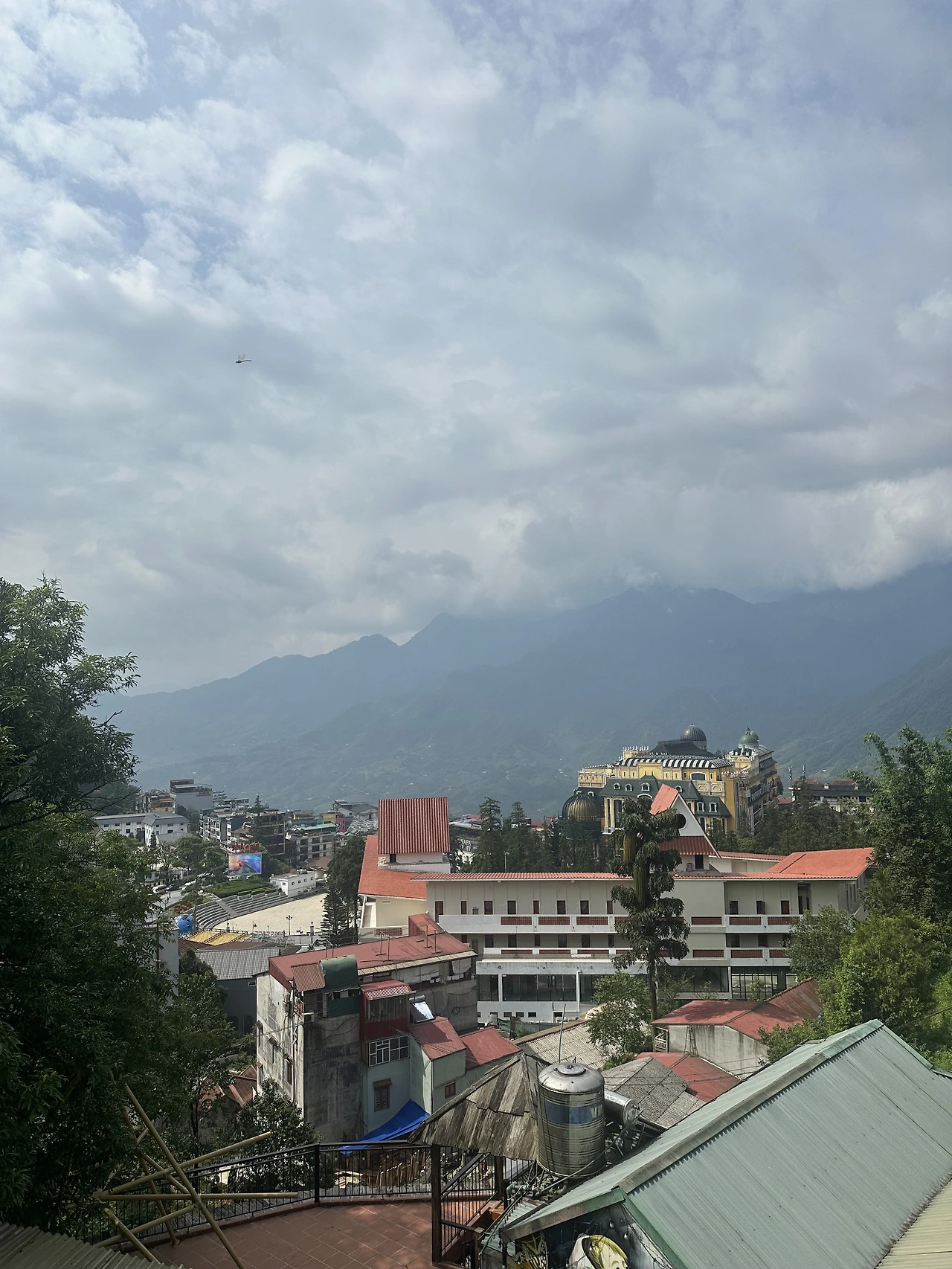사파스테이션(선플라자)도 한눈에 보이고 갈색 지붕들, 저 멀리 큰 산의 경치까지.