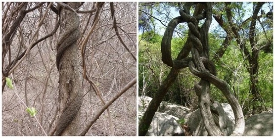 그림 3. 좌측은 칡나무, 우측은 등나무. 엄지손가락을 위로 세우고 휘감아 잡을 때, 어느 방향으로 감싸는가? 회전 방향을 손 방향으로 정의할 때는 이러한 방식을 이용하곤 한다.