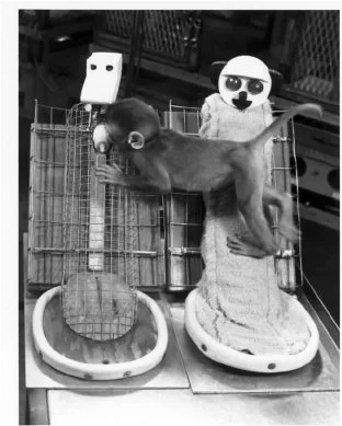 그림 1. 할로우의 원숭이 실험(Harlow, 1959). '사랑의 본질' 이라는 제목으로 출판되었다.