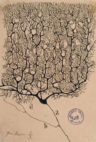 그림 3. (좌) 카할의 신경세포 그림 (우) 골지염색법을 이용해 형상화한 신경세포. 놀라운 그림 실력과 관찰력을 엿볼 수 있다. 이 관찰에서 신경생리학이 시작된 것이나 다름없다.