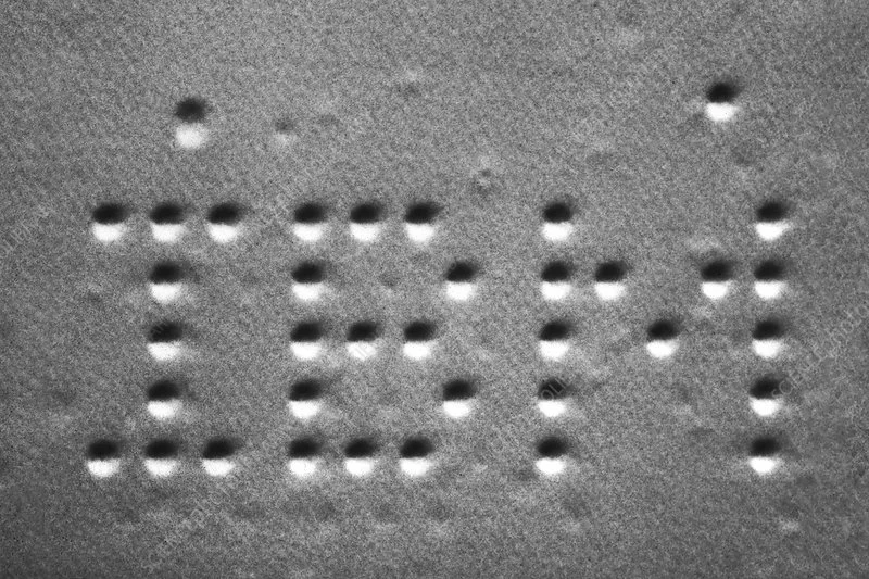 그림 4. IBM 사에서 제논 원자들을 조작하여 그린 회사의 엠블렘. 보이는 점 하나가 원자 하나다.