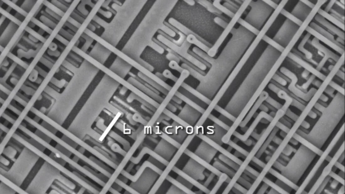 그림 4. 마이크로프로세서를 현미경으로 들여다보면, 이렇게 생겼을 테다. 머리카락의 수십만 분의 일 수준의 미세한 구조를 레이저로 깎아내어 복잡한 배선도를 만든다(미주 2 참조).