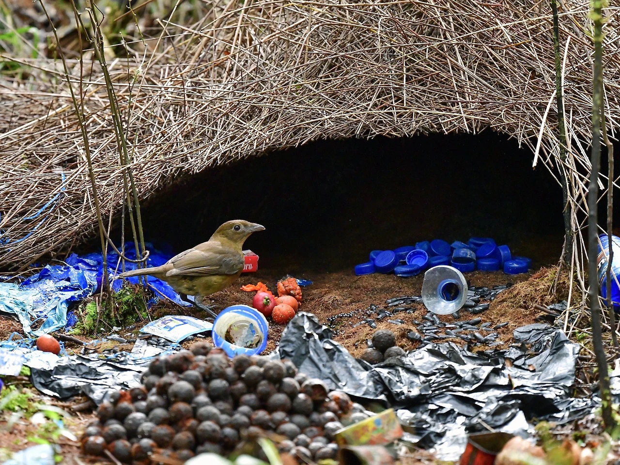 그림 4. 바우어새의 둥지. 이들은 아름다운 색을 가지는 물체들을 가져다 가지런히 정렬해 아름다운 둥지를 짓는다. 인간의 심미안과 동물의 그것이 일치함은 무언가를 시사한다.