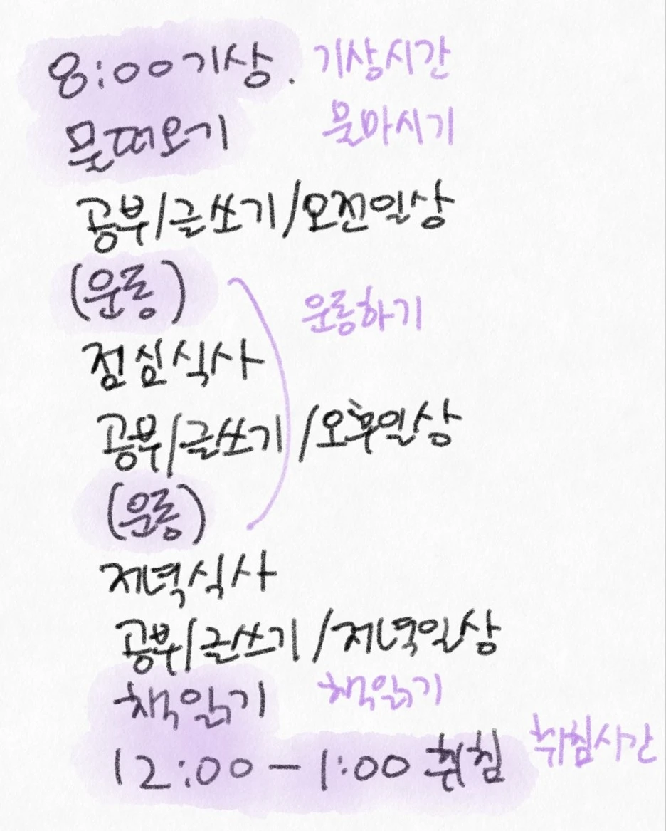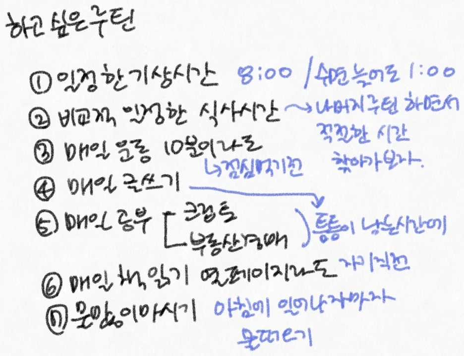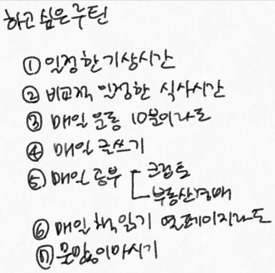 하고 싶은 루틴을 그냥 막 다 적었을 때에는 너무 많은가 싶었는데