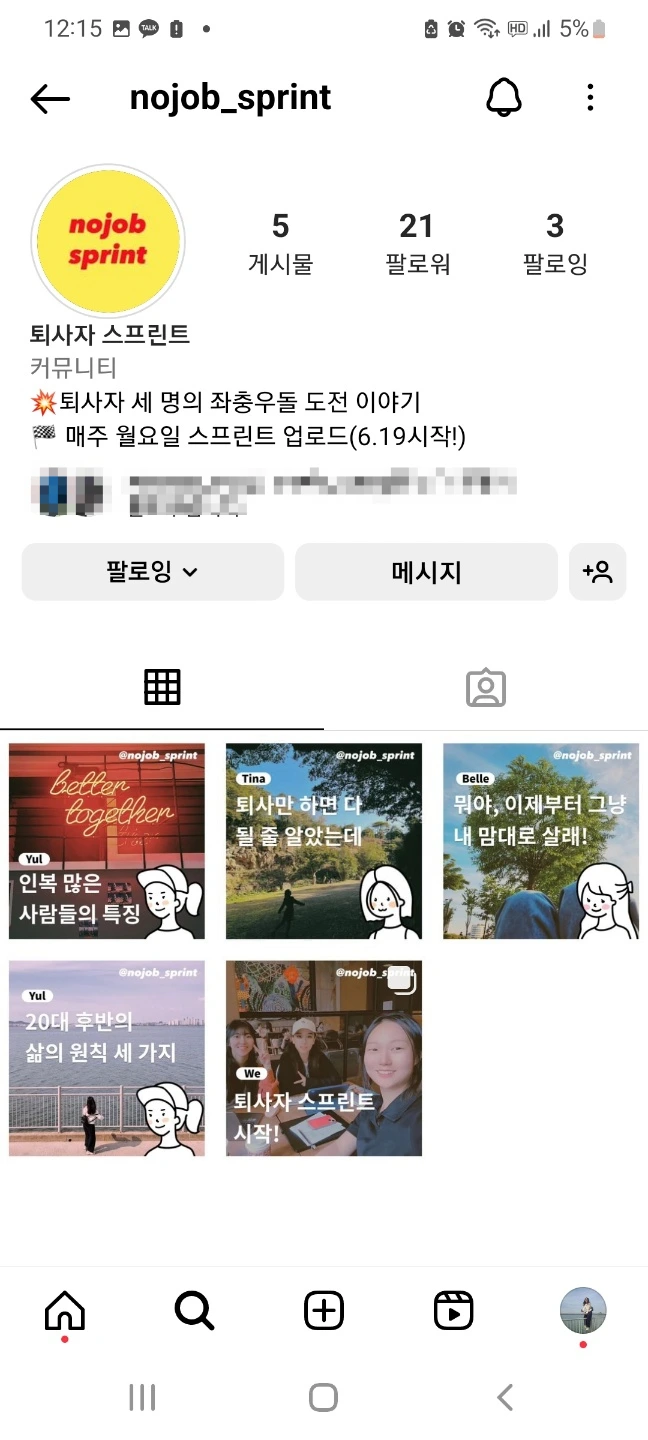 지난번에 얘기했던 퇴사자 스프린트 인스타 계정을 개설하고 글을 조금씩 올리고 있다.