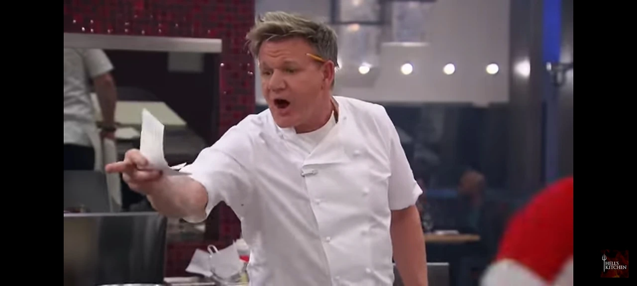 고든램지(Gordon Ramsay)는 주방을 직접 돌아다니면서 모든 출연자의 일거수일투족을 빠짐없이 관찰한다. 팀원들이 흐트러지거나 집중하지 못할 때나 내온 음식이 형편없을 때 여지없이 고든램지의 호통을 듣게 되고 음식이 엉망이면 주저 없이 주방 뒤편이나 쓰레기통으로 요리를 집어던지기도 한다. 오픈주방에 당일 방문한 손님들은 이 과정을 바로 앞에서 지켜보게 된다. 때로는 주방 밖으로 모두 불러내어 호되게 욕을 하거나 요리를 망친 팀원은 내쫓기도 한다. 한때는 고든램지의 욕설과 호통이 프로그램 인기 이유라는 소문이 있을 정도였다.