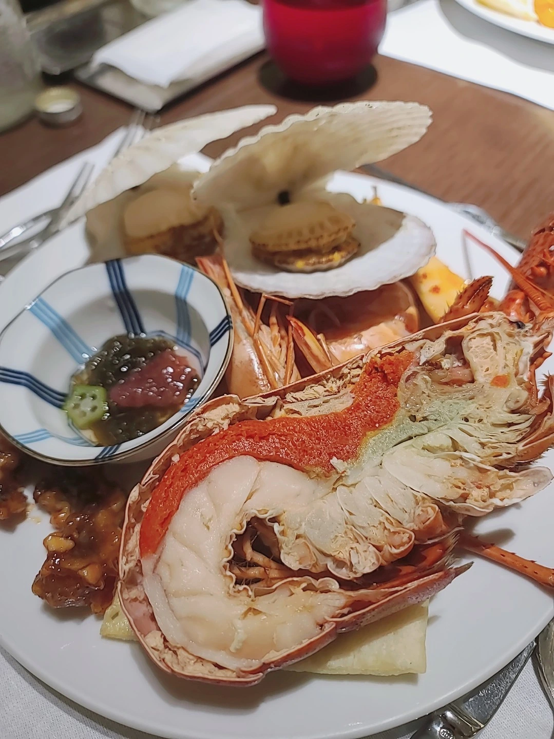 바로 해산물과 고기 코너다. 가리비와 랍스터가 찜으로 통째로 올려져 수북이 쌓아놓는데 가장 처음 눈에 띄는 음식 코너 중앙의 줄 서는 곳이다. 가리비는 손바닥만 한 것이 알맹이만도 크기가 꽤 크다.
