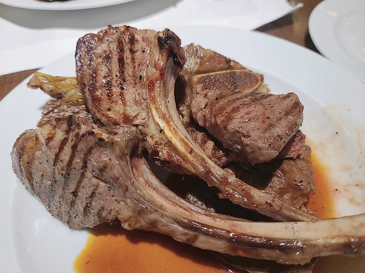 같이 먹을 수 있는 옥수수구이나 아스파라거스 구이 등 가니쉬도 준비되어 있다. 여러 소스가 있지만 고기 자체만도 특별히 간을 하지 않아도 적당한 굽기에 육즙 가득 맛있었다.접시 아래 스테이크 소스로 생각한 까만 소스를 살짝 뿌리고 퍼졌지만 고기를 썰면서 묻은 소스 자체가 맛이 강하지 않아 오히려 좋았다.