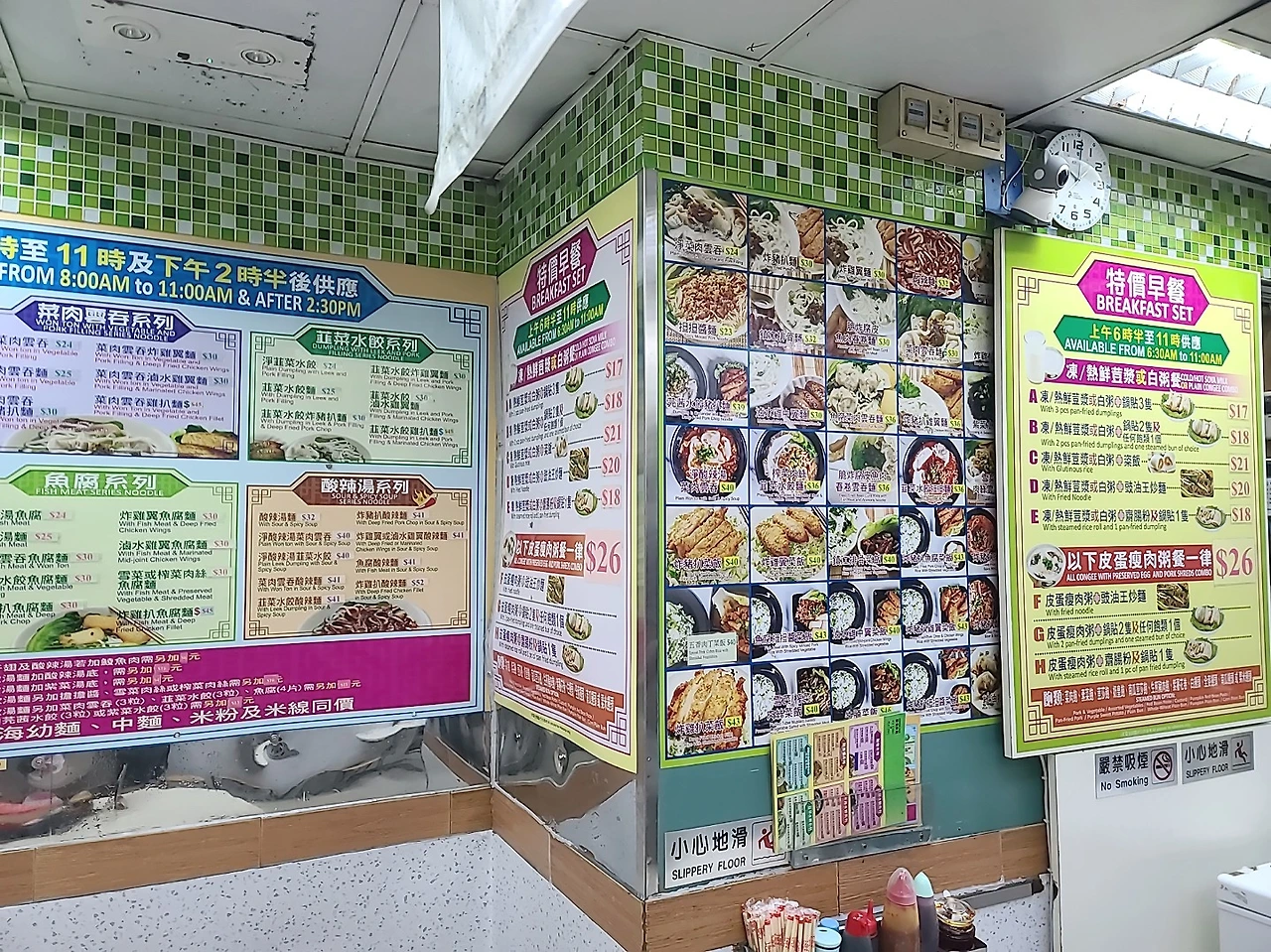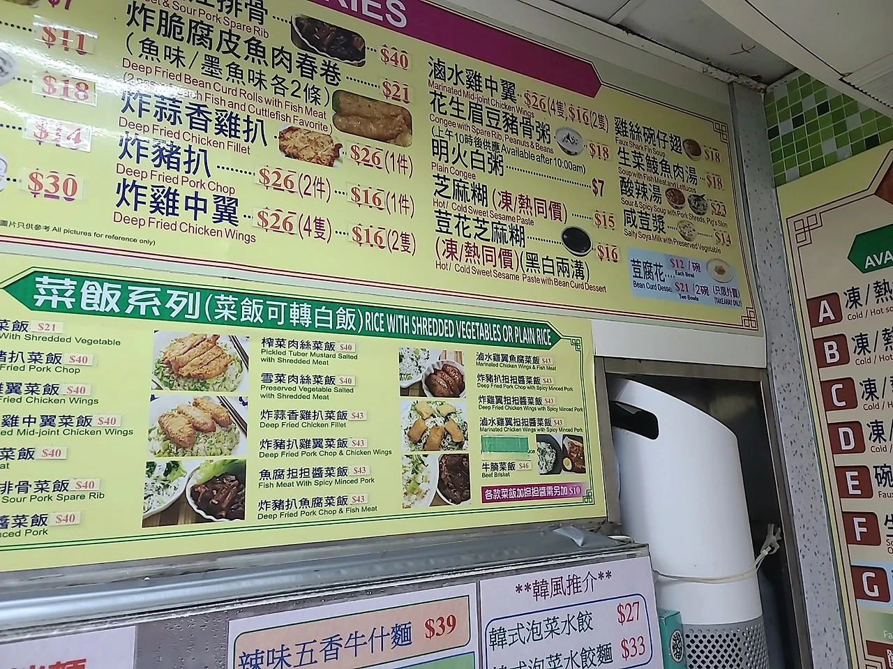 거리가 조금 있지만 익청빌딩 자체가 꼭 봐야겠다는 것보다 여기까지 온 다른 이유가 있는데 아침식사 고민하던 중에 마침 이 아파트 1층에 콘지(congee) 집을 누가 리뷰로 쓴 글을 봤기 때문이다. 콘지(congee)는 우리나라로 치면 죽이다. 홍콩 사람들이 아침에 간단한 식사로 많이 먹는 것 중 하나가 콘지이다. 소고기나 돼지고기, 콩 같은 토핑을 넣어 끓인 죽이다. 홍콩 맛집으로 검색하면 더 유명한 콘지 집은 따로 있지만 태풍 때문에 모든 식당들이 영업하지 않아 굳이 찾아갈 이유는 없다. 하지만 익청빌딩에 있는 콘지집도 영업을 하지 않아 약간 아쉬움 속에 발길을 돌렸다.돌아가는 길에 크고 작은 찐 현지인 식당들이 몇 개 있어서 거기에 기대를 걸어본다.