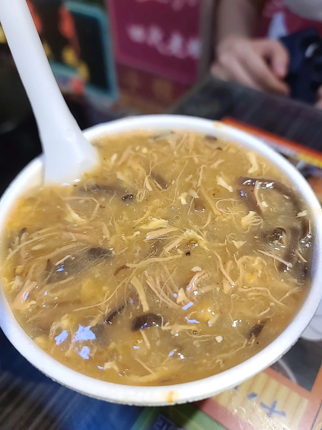 우리의 저녁 메뉴인 도기스누들과 샥스핀이다. 도기스 누들은 식감은 불은 우동면 같은 면이 짤막하게 뚝뚝 끊긴 형태가 육수에 담긴 누들이다. 짧은 면발이 강아지 꼬리같다해서 붙어진 이름이라고 한다. 샥스핀은 이름만 샥스핀이지 실제로는 오리고기로 만든 수프이다. 오리고기를 얇게 손질해서 샥스핀 같은 식감을 냈다고 한다. 와이프는 샥스핀을 나는 도기스 누들을 선택했다. 작은 컵라면 컵보다 조금 큰 컵에 담겨 나오는 누들인데 육수도 좋고 은근 맛이 있어서 꽤나 만족스럽다. 식당에 들어갈 때 큐알코드가 있는 종이를 주는데 이 큐알코드로 들어가 주문하면 끝난다.