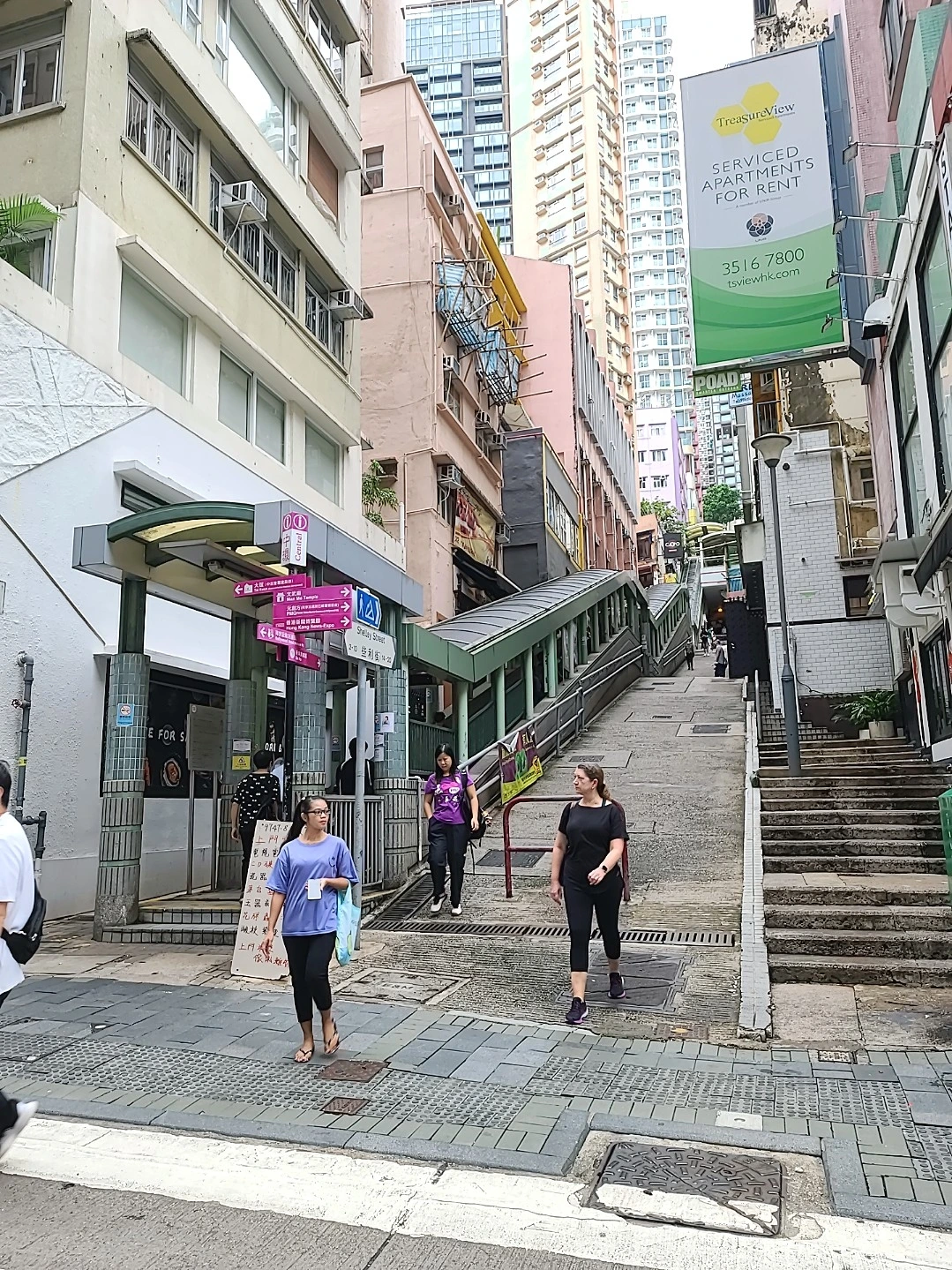 청힝키 바로 반대편의 타이청베이커리에서 에그타르트를 사서 계속 움직이면 금방 미드레벨 에스컬레이터가 나온다. 이곳이 미드레벨 에스컬레이터의 시작하는 곳은 아니나 이렇게 역과 번화가가 있는 아래 지역부터 언덕을 빠르게 올라 윗동네로 편하게 갈 수 있도록 에스컬레이터를 설치해 둔 것이다. 800m 정도의 거리에 20여 개를 설치해서 편하게 이동하게 만든 것이고 양방향으로 두 개가 설치된 게 아니라 시간에 따라 상행 또는 하행으로 운행 방향이 바뀐다. 세계 최장 옥외에스컬레이터이면서 영화 중경삼림에 나와서 더욱 관심받는 곳이기도 하다. 주변에 소호 벽화거리가 있고 여러 식당과 상점들이 골목골목 자리 잡고 있다.