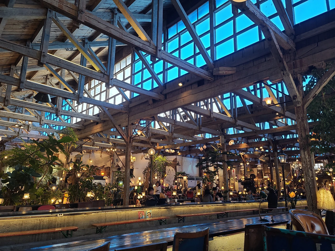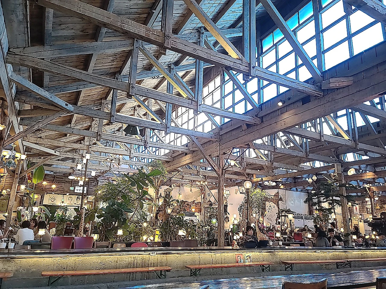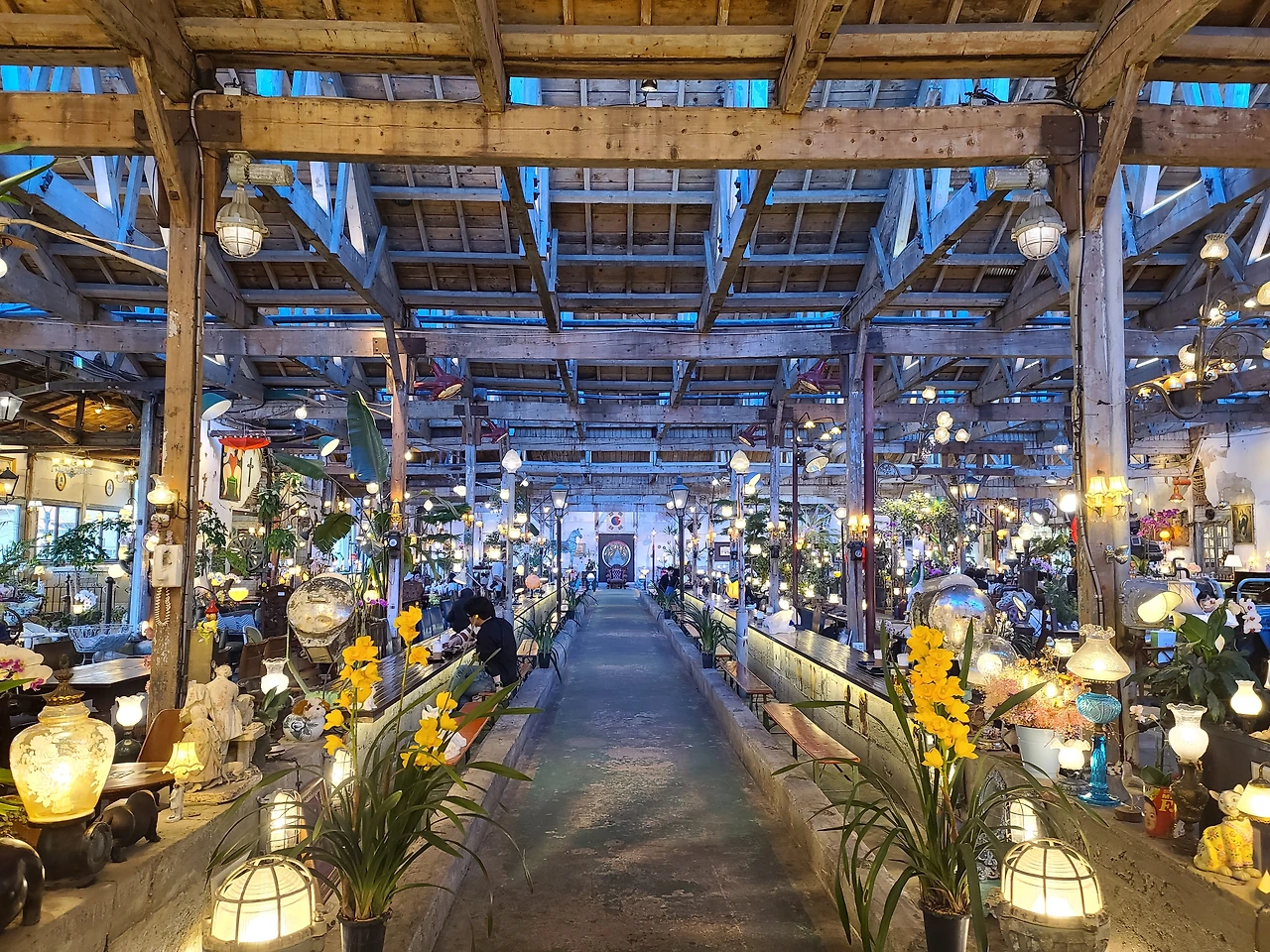 어마어마한 공간에 많은 소품과 조명들이 있고 의자도 많아서 앉아 쉬기 좋다. 날씨가 더워도 이곳에서 더위도 피하고 차 한잔하면서 시간을 보내기 딱 좋을 것 같다. 공간 구석구석을 매운 여러 소품들은 아마도 이곳을 만든 사람들이 수집한 물건들로 보인다. 어떻게 이 오래된 공장터에 수집한 골동품들을 인테리어로 활용해서 이러한 공간을 탄생시켰는지 감탄하게 만든다.