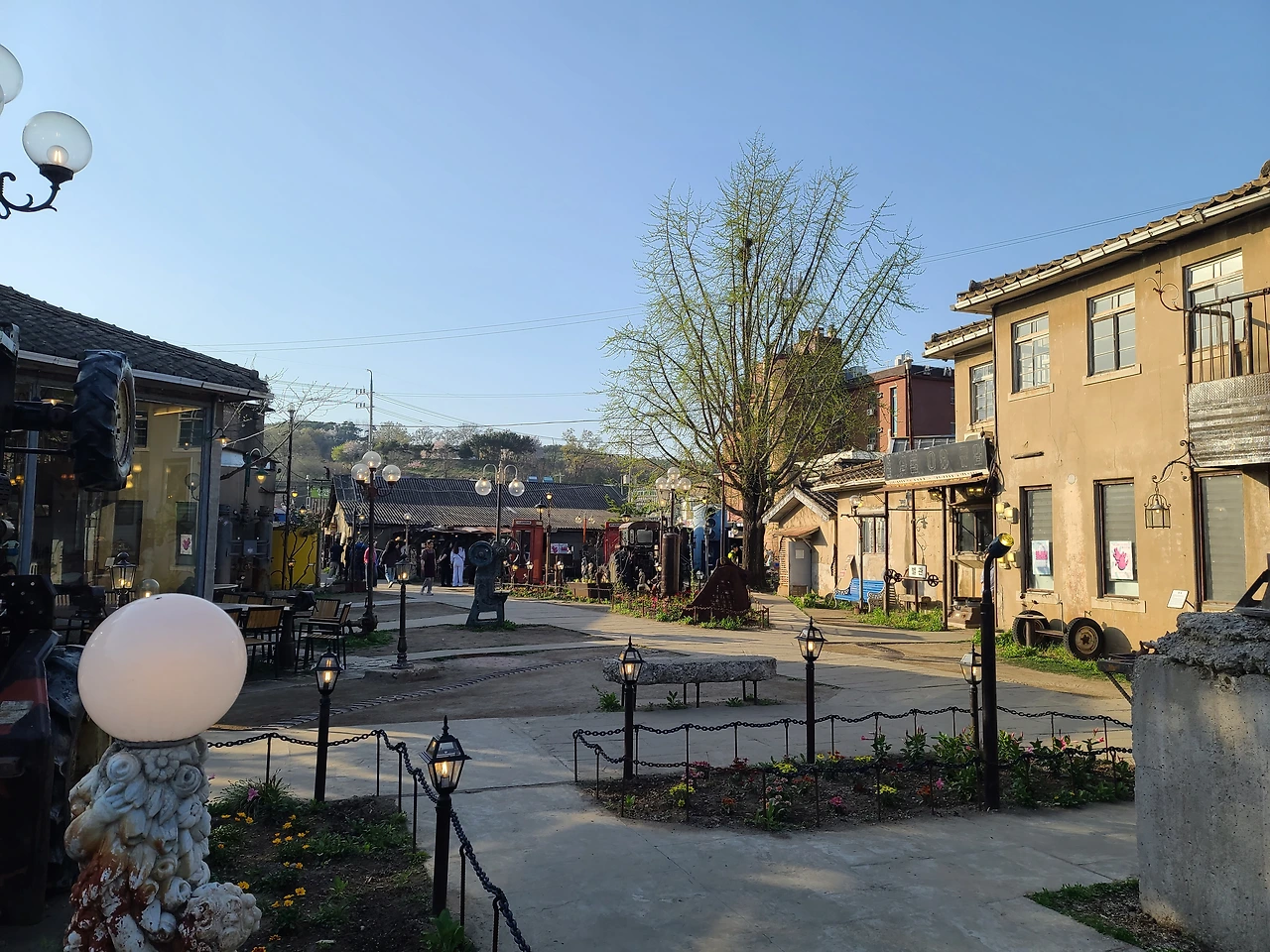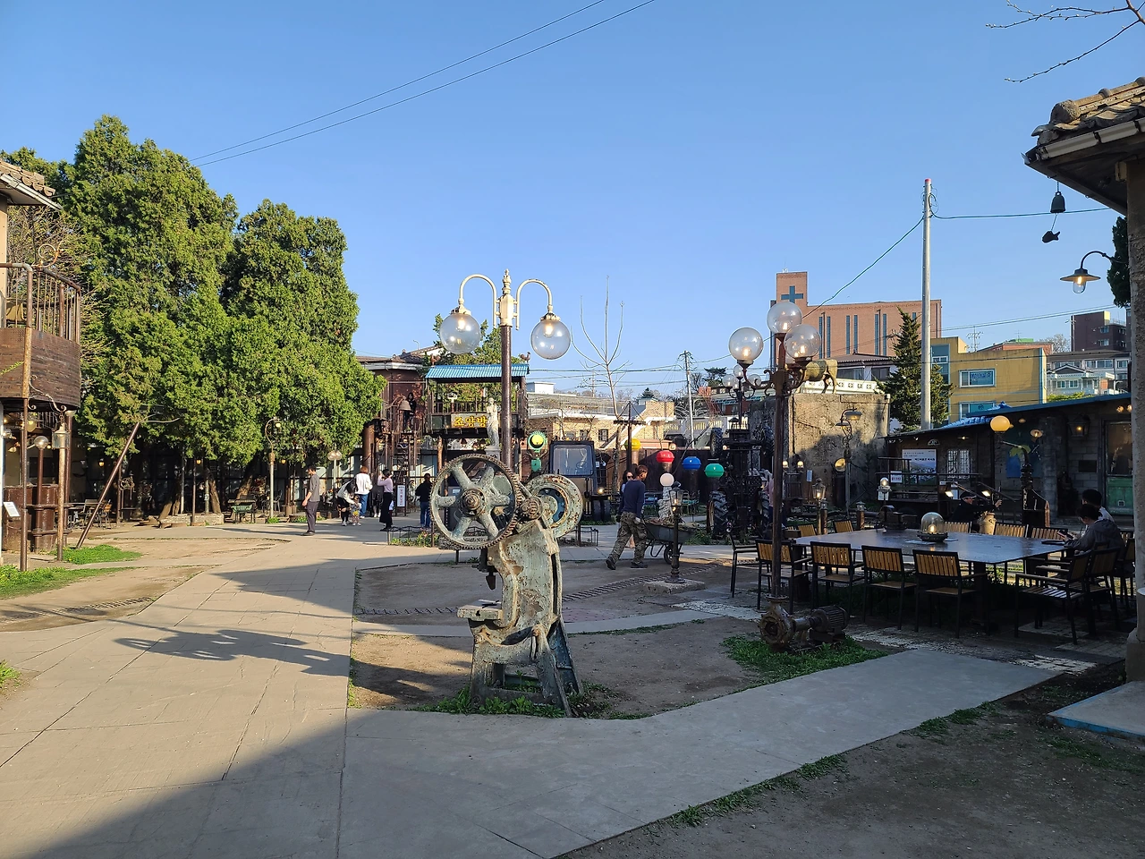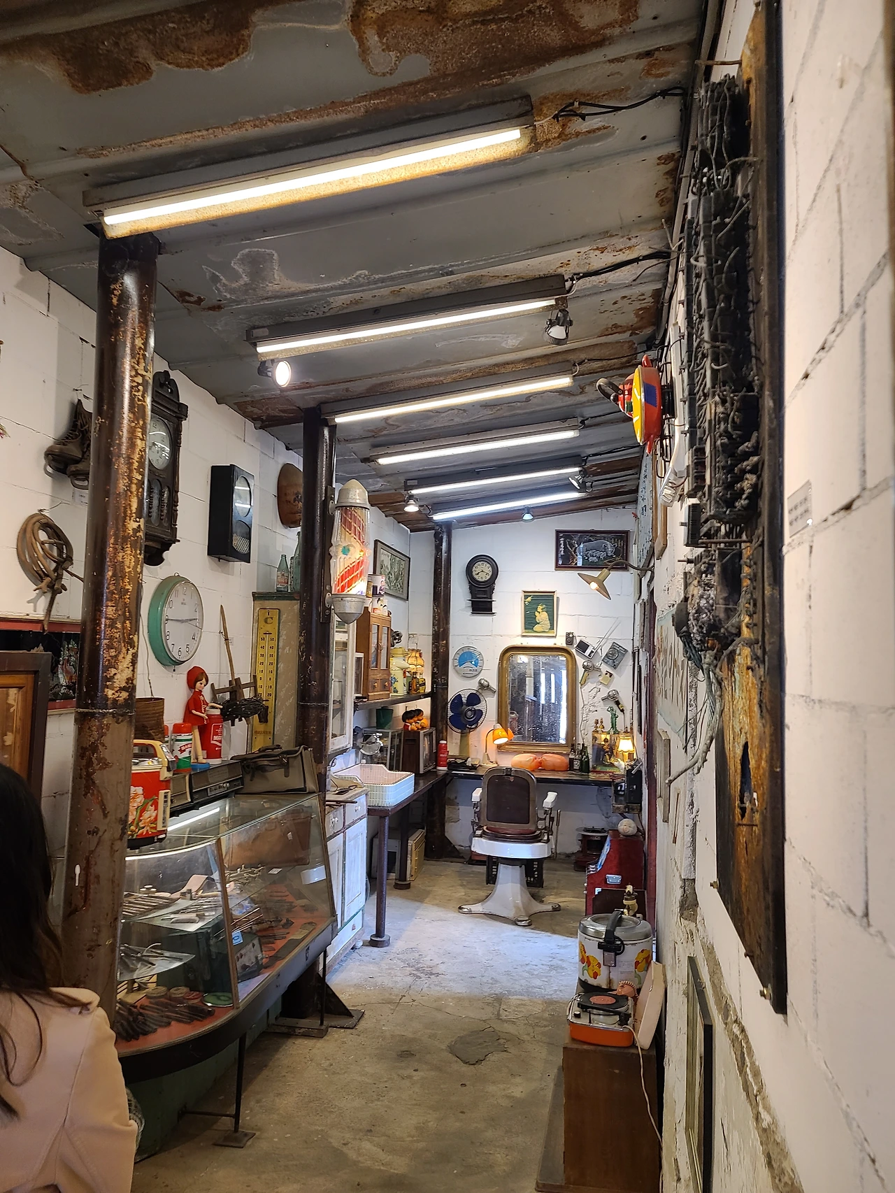 어마어마한 공간에 많은 소품과 조명들이 있고 의자도 많아서 앉아 쉬기 좋다. 날씨가 더워도 이곳에서 더위도 피하고 차 한잔하면서 시간을 보내기 딱 좋을 것 같다. 공간 구석구석을 매운 여러 소품들은 아마도 이곳을 만든 사람들이 수집한 물건들로 보인다. 어떻게 이 오래된 공장터에 수집한 골동품들을 인테리어로 활용해서 이러한 공간을 탄생시켰는지 감탄하게 만든다.