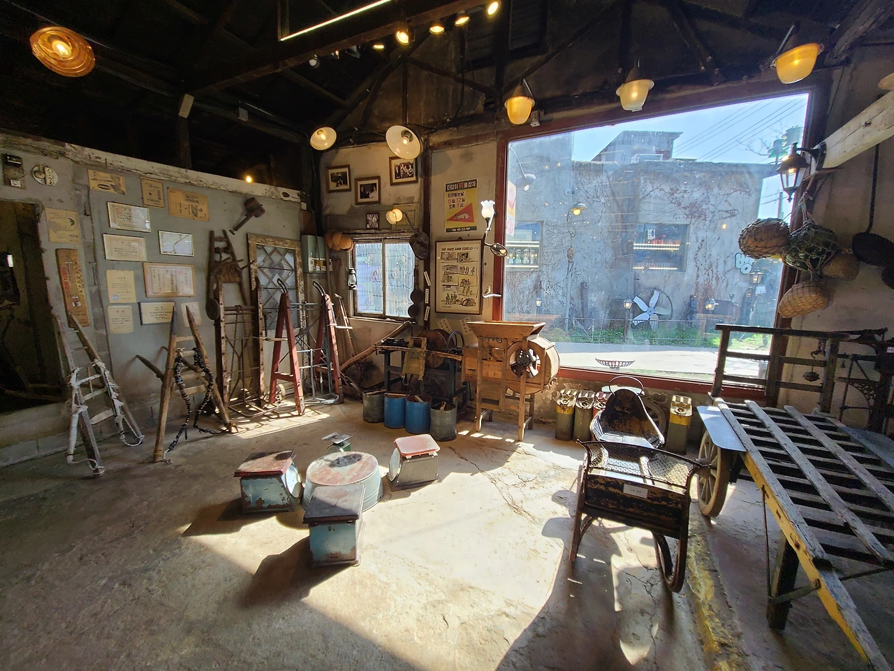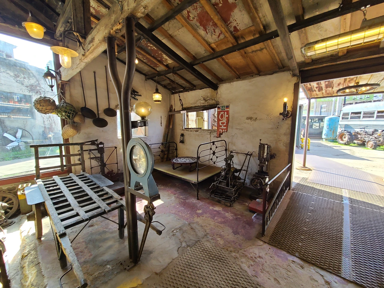 한국전쟁을 거쳐 1958년 문을 닫았던 공장은 2010년대에 미술관카페로 문을 열었다고 한다. 들어가는 입구에서 왼편으로 따로 입장료를 받지 않는 입구가 있고 그 안에 오래된 옛날 물건들을 잘 진열해 놓았다.