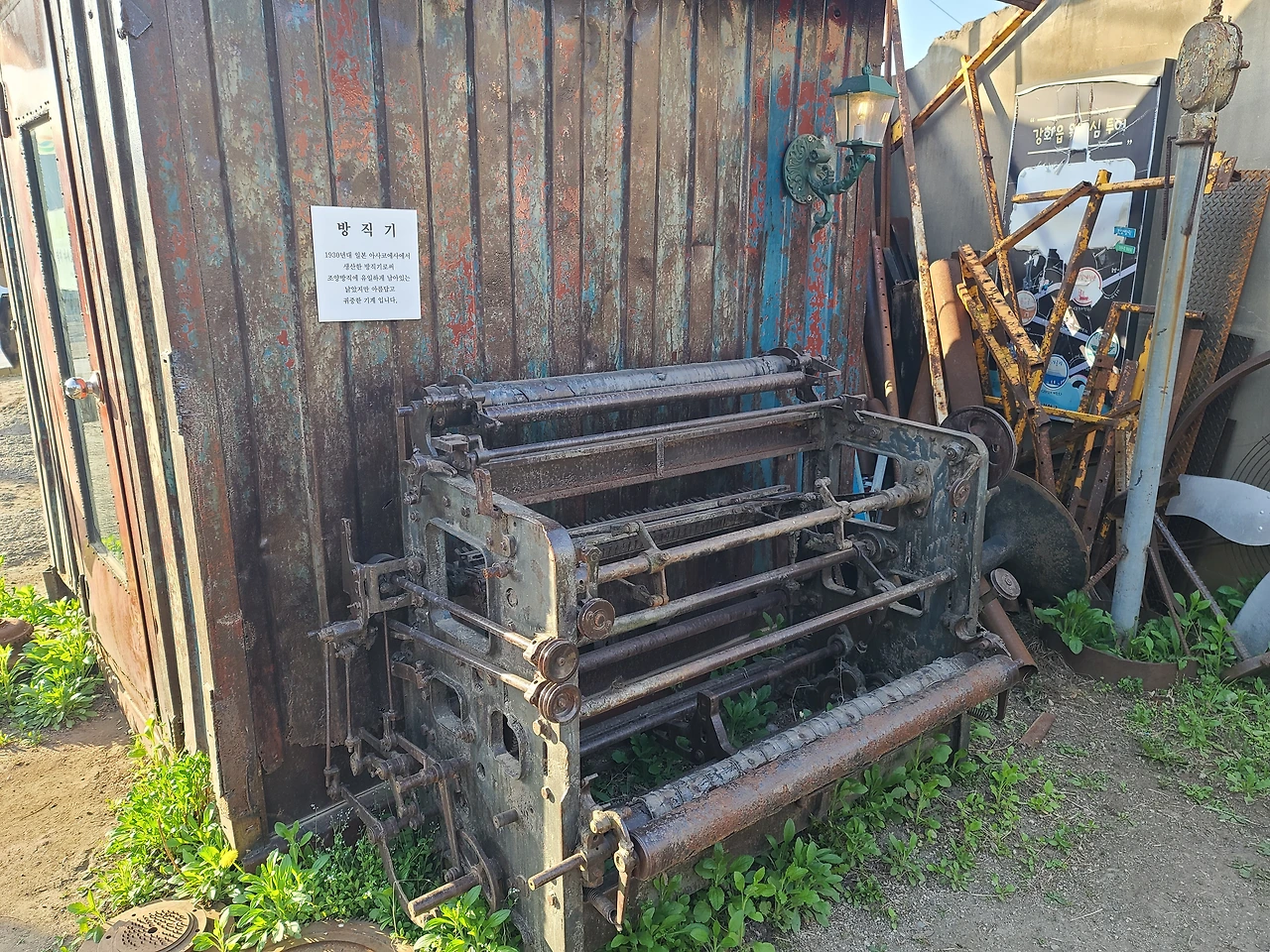 '방직기'라고 안내문이 붙어있는 오래된 기계가 있다. 과연 어떻게 작동을 하고 사용했을지 모르겠지만 얼핏 보아도 십수 년은 되어 보인다.이곳에 이런 것이 있는지 이제야 알게 되었다. 이곳은 강화도.
