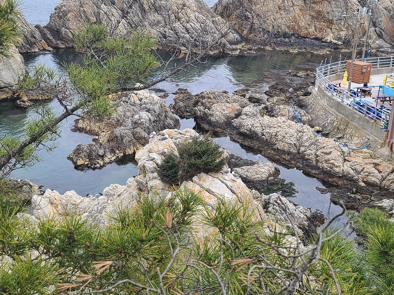 케이블카 탑승장이 있는 한 어촌마을도 조용하니 좋다. 나는 사진 찍는데 노력을 안 들이는 편인데 평생 사진을 업으로 하셨던 아버지는 핸드폰 카메라로 툭툭 찍으시면서 저렇게 또렷하고 멋있는 갈매기 사진을 찍으셨다. 역시 보통 솜씨가 아니다.