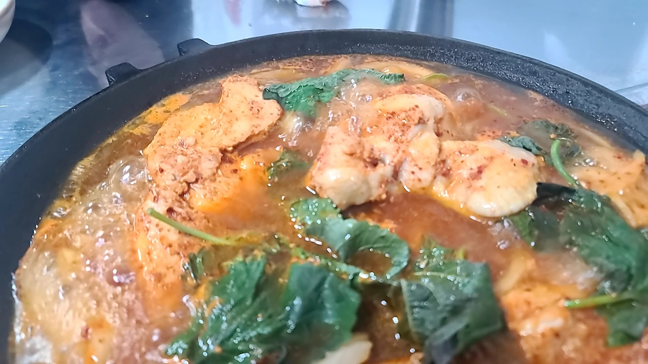 메뉴는 바로 물닭갈비였다. 물이 들어간 갈비든 전골류는 원래 많지도 않지만 찾아먹어보지도 않았던 메뉴다. 그냥 흥건한 국물에 끓이는 게 뭔가 먹기도 전부터 매력이 떨어진달까. 역시 나의 선입견이었다.