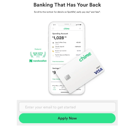 기존 은행은 계좌를 개설하기 위해 신용도 조회 및 심사와 방문 예약, 그리고 서류들을 준비해서 직접 은행에 가야 하는 번거로운 과정이 필요하다. 반면 Chime은 이메일 계정과 몇 가지 개인 정보만 입력하면 바로 계좌 개설 가능하며, 동시에 Debit card(체크카드)를 수수료 없이 보내준다.
