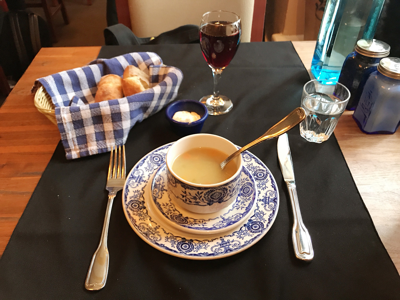 프랑스 고전영화에서나 나올 것 같은 아기자기한 그릇에 수프가 나왔다. 소박한 야채수프였지만 맛은 절대 소박하지 않았다. 지금까지 여행중 먹었던 음식중에 가장 맛있는 음식이었다.