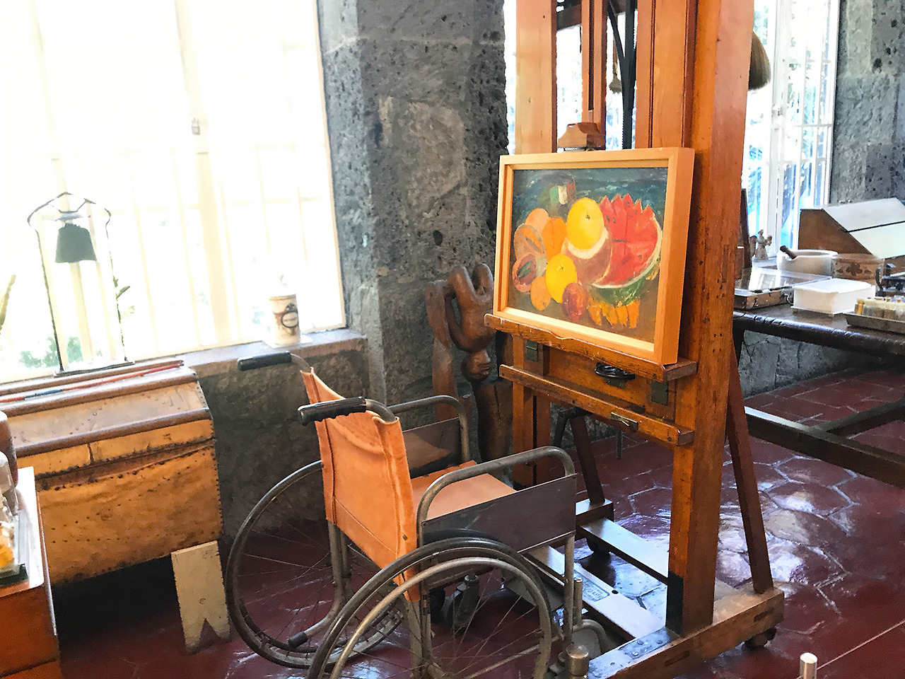 몸이 불편한 프리다칼로를 위해 특수 제작된 이젤과 낡은 휠체어 @ Casa Asul Coyoacan, Mexico city
