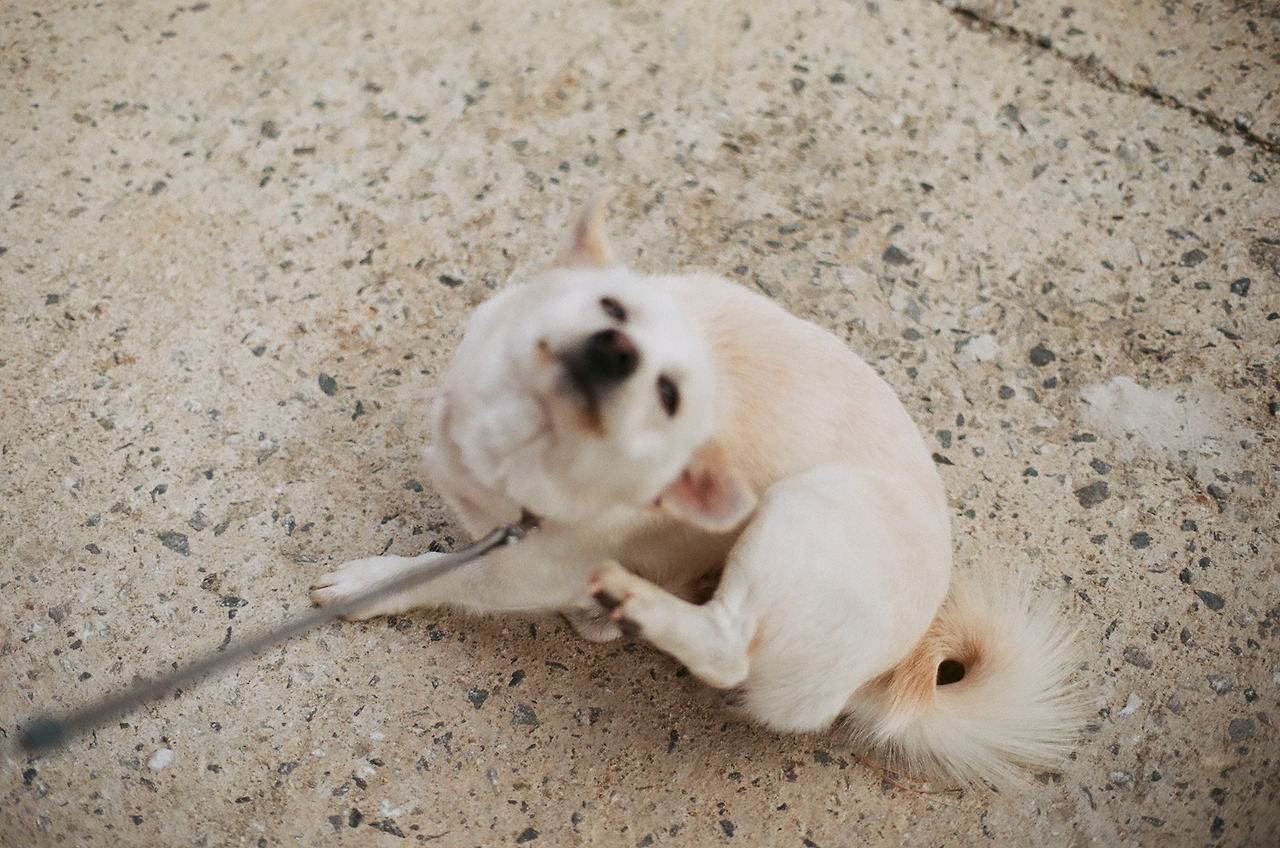 한 번뿐이겠지 했는데, 다음날 동그란 진드기가 또 발견됐다. 풀밭이나 산을 자주 돌아다니니 여러 마리 진드기가 혁구 몸에 붙어있는 것 같았다. 붙기 전에 하면 좋았겠지만 늦게나마 외부기생충약을 사러 병원에 갔다. 의사 선생님은 뒷목덜미 쪽 털을 결 반대 방향으로 쓰다듬듯이 걷어내고 피부에 바르라고 하셨다. 꼭 뒷목덜미에 바르라고 강조하시기에 사람이 엉덩이나 팔에 주사를 맞는 것처럼 효과적으로 약물을 흡수시키기 위한 특별한 이유가 있나 보다고 생각했는데 개가 건드리거나 핥을 수 없는 위치여서 그런 것 같았다. 병원에서 알려주신 대로 약을 바르려는데 혁구 털이 워낙 짧고 빽빽해서 피부가 보이지 않았다. 혁구를 붙들고 털을 한참이나 뒤적였다. 약을 바르면서도 이렇게 하는 게 맞는 건지 계속 의문이 들었다. 개 의약품을 처음 접하는 나로서는 일종의 살충제 성분을 몸에 바르는 것도, 발라 놓으면 효과가 한 달이나 지속된다는 것도 신기하게 느껴졌다.