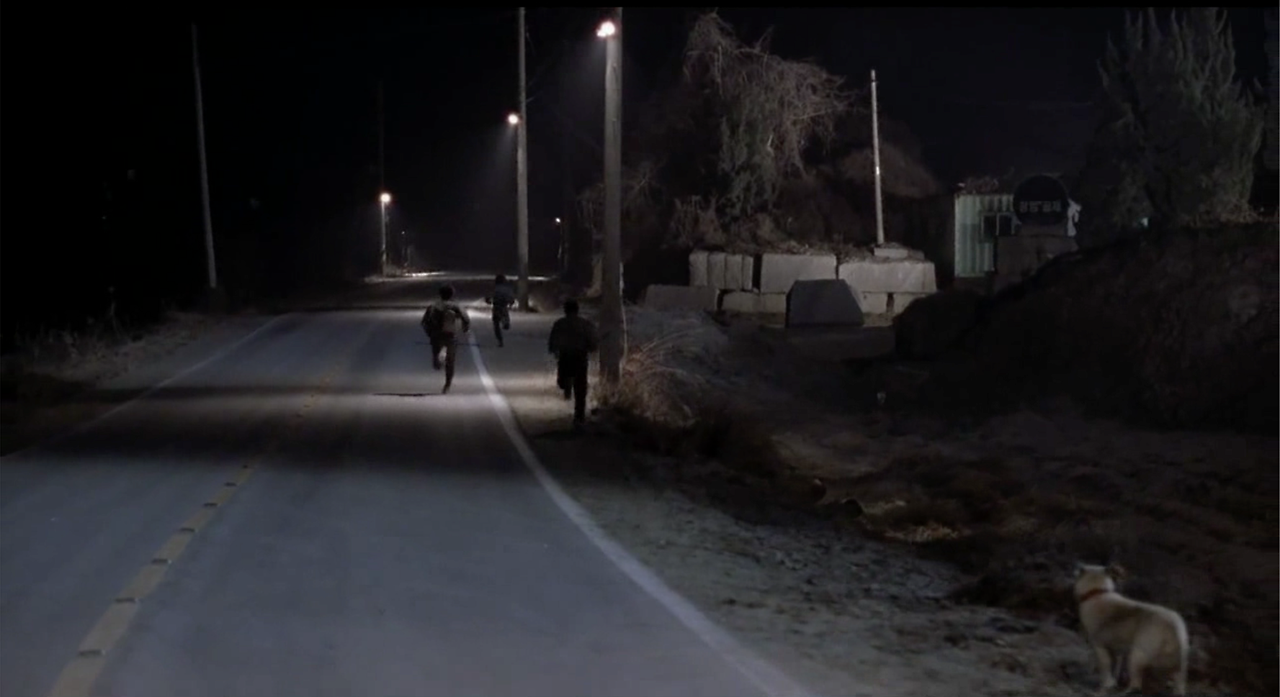 두 번째 용의자 병순(류태호 분)을 쫓는 시퀀스에서는 두 마리의 개가 따로 한 번씩 나온다. 병순은 늦은 밤 야외에서 자위행위를 하다가 인기척을 느끼자 무작정 도망친다. 잠복해 있던 두만, 용구(김뢰하 분), 태윤(김상경 분)이 그 뒤를 쫓는다. 이전의 한국영화에서 시골을 배경으로 벌어지는 추격전을 본 적이 없다는 감독은 80년대의 시골 공기를 화면에 흠뻑 불어넣는다. 굽이굽이 굽은 골목길을 형사들과 함께 달리다 보면 어느새 숨이 가빠 온다. 탁월한 리듬감으로 긴장감과 박진감을 더해가던 추격전은 태윤을 따라서 소현네 집으로 들어가서야 숨을 고른다. 음악도 소리를 죽이다가 멈춘다. 태윤은 소현 엄마(염혜란 분)에게 “여기 이상한 사람 안 들어왔어요?”라고 확인하고 나서 다시 병순을 쫓으러 나가고, 소현(우고나 분)은 태윤을 알아보고 친구인 남주(이옥주 분)에게 예전에 초소에서 만났던 형사라고 말한다. 소현이 이상한 사람을 아는 체를 하자 소현 엄마가 소현에게 묻는다. “아는 사람이야?”.