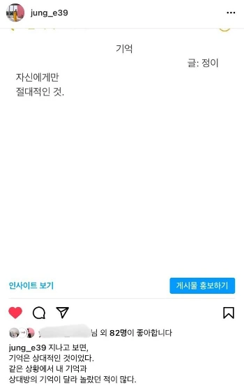 그 순간 알게 되었다. 기억은 나에게만 절대적인 것이지, 사실은 상대적인 경우가 많다는 것을 말이다.