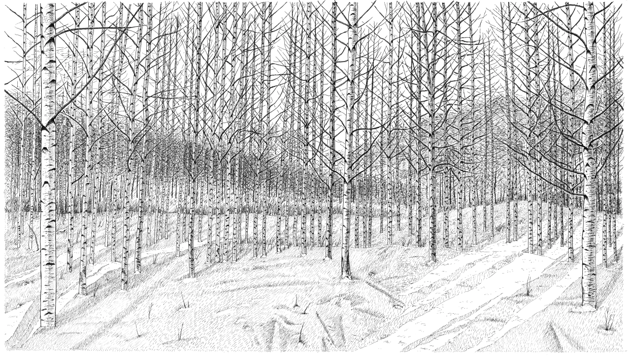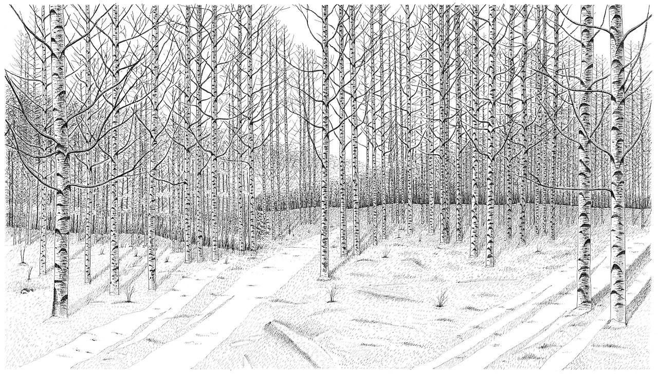 강원도 인제의 눈내린 자작나무 숲을 2개 그렸습니다.