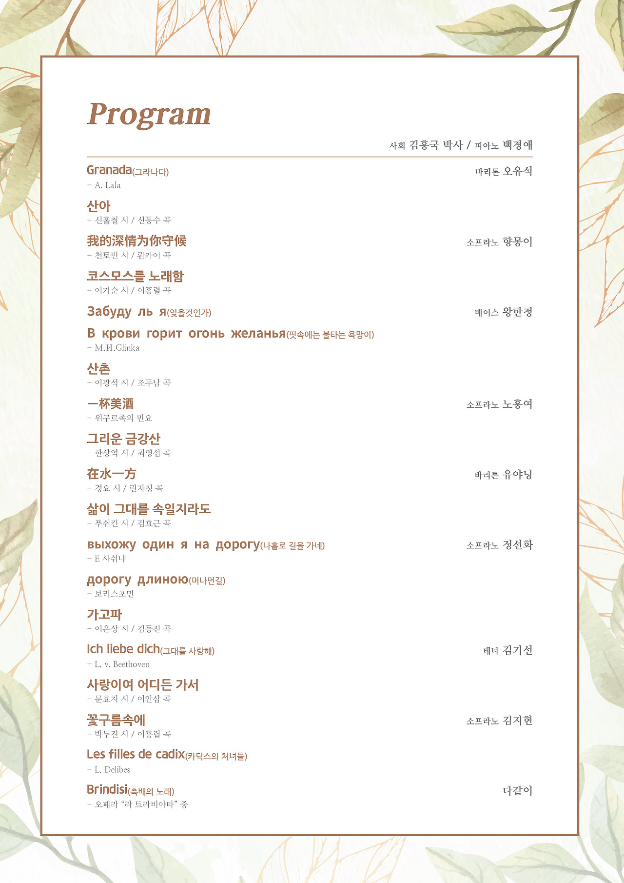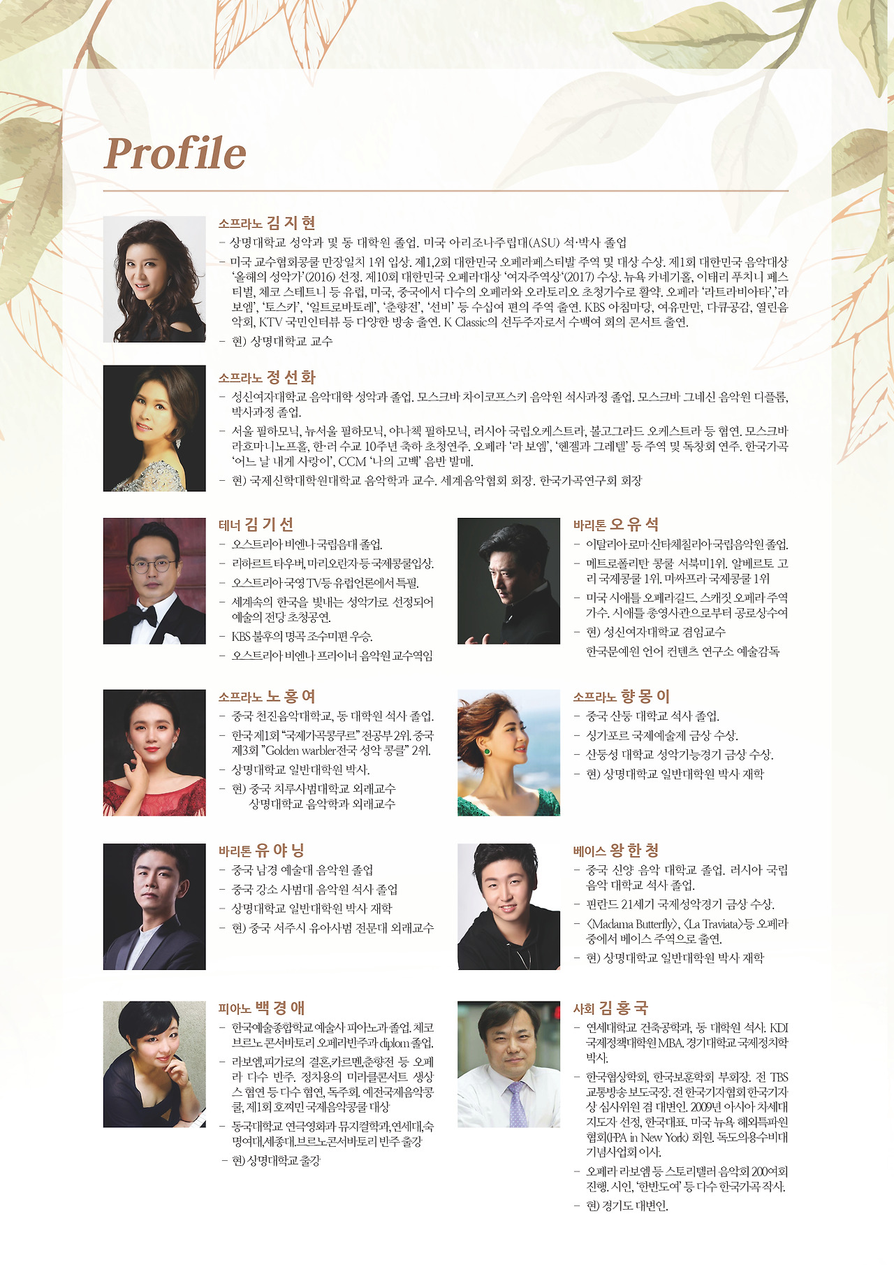 전시회가 끝나기 하루 전인 10월 10일(토) 오후 3시에는 전시장 위쪽에 마련되는 특별무대에서 국내 정상의 성악가(소프라노 김지현, 정선화, 테너 김기선, 바리톤 오유석)들과 중국 성악가(소프라노 노홍여, 향몽이, 바리톤 유야닝, 바리톤 진양명)들이 마련하는 <숲속 예술가곡 여행> 음악회가 열립니다.