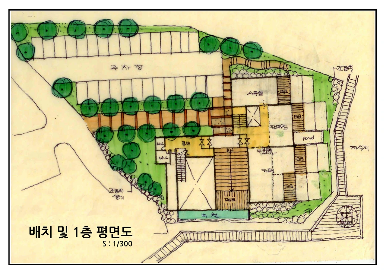 지난 해 포천시 고모리에 위치한 고모저수지 변에 있는 대지에 계획을 한 안이다.