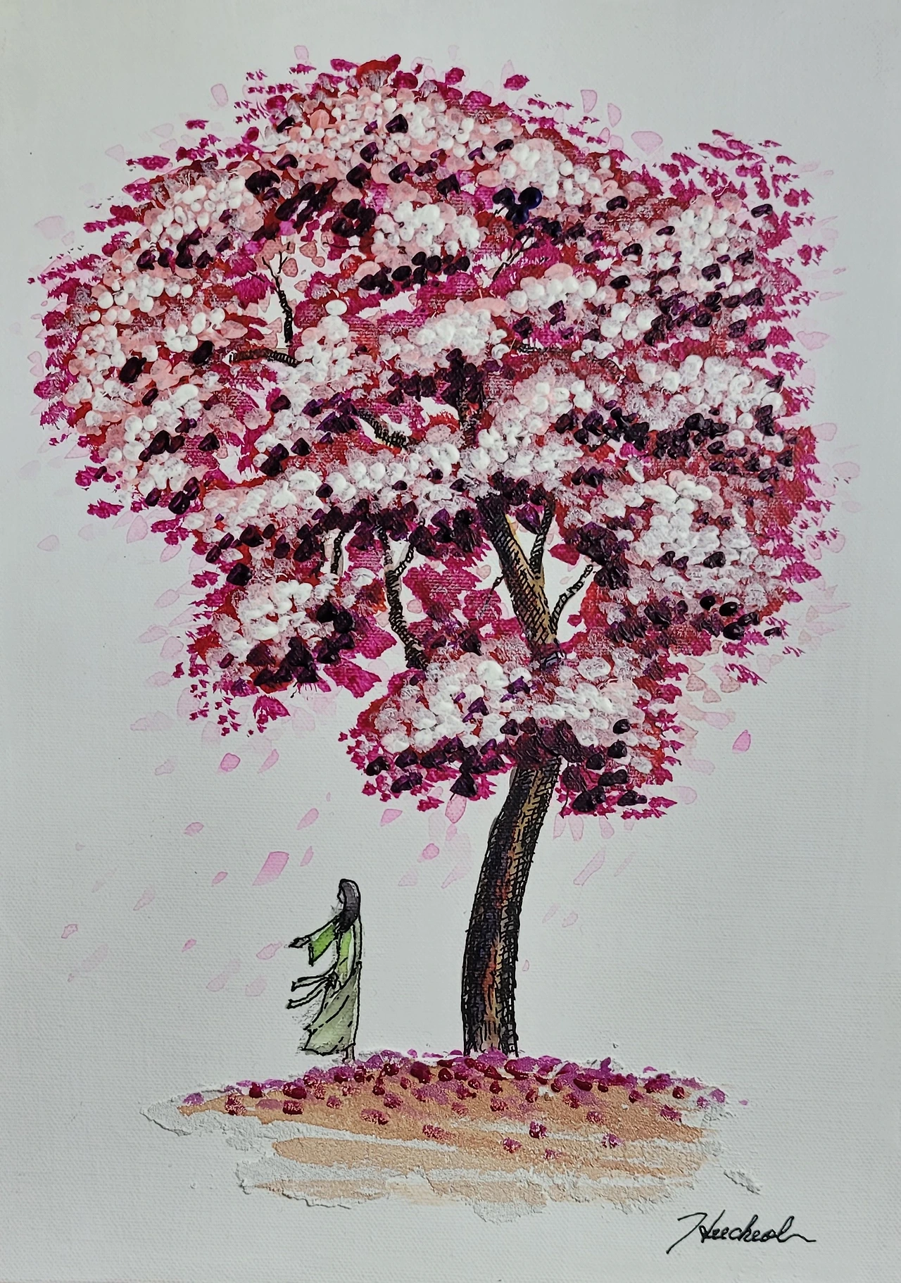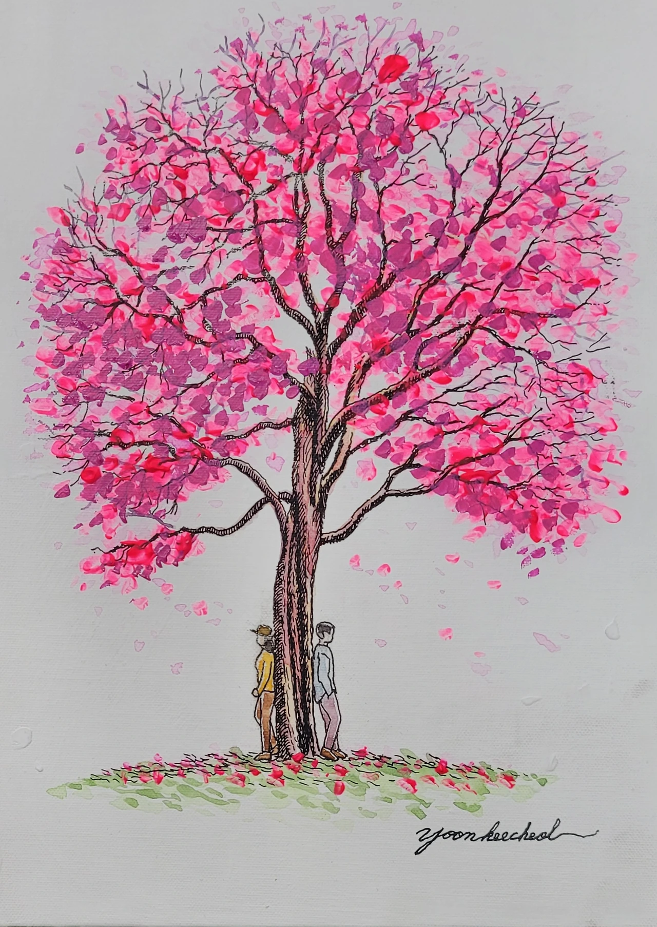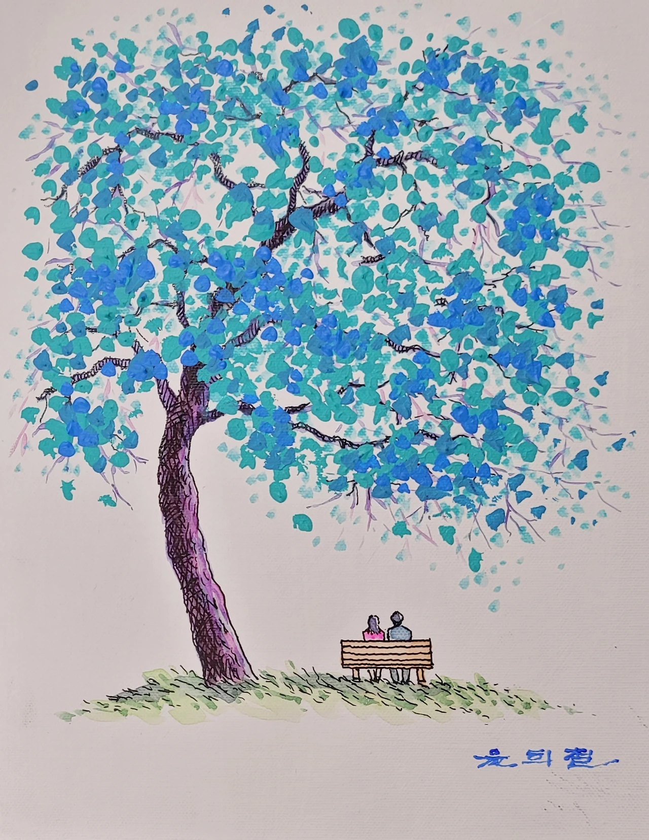 간단히 그리는 나무 시리즈 입니다. 4호의 캔버스에 펜으로 간단히 그리고 수채와 아크릴을 같이 사용하였습니다.