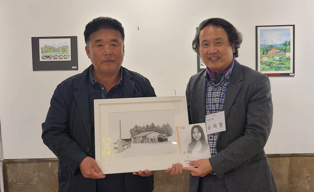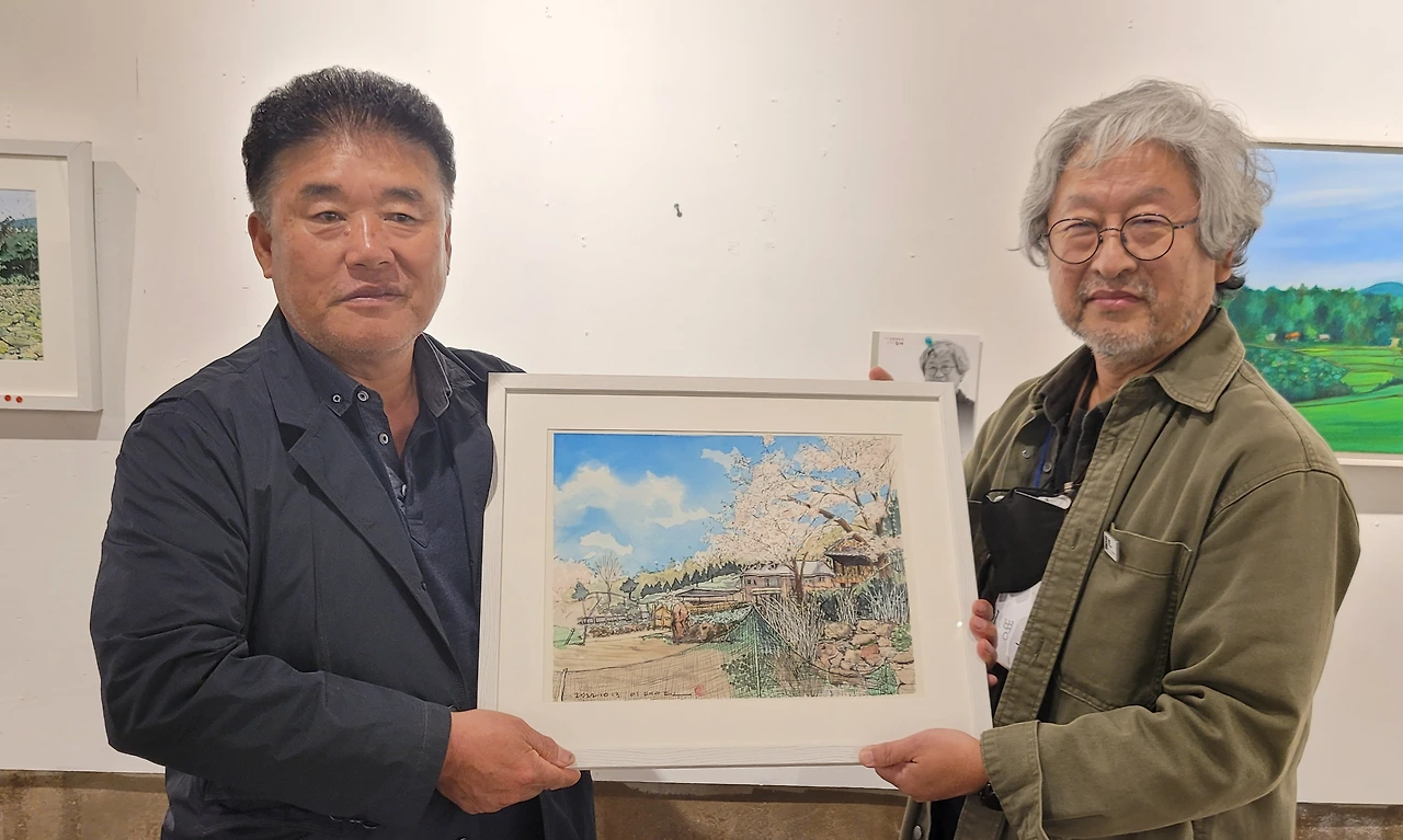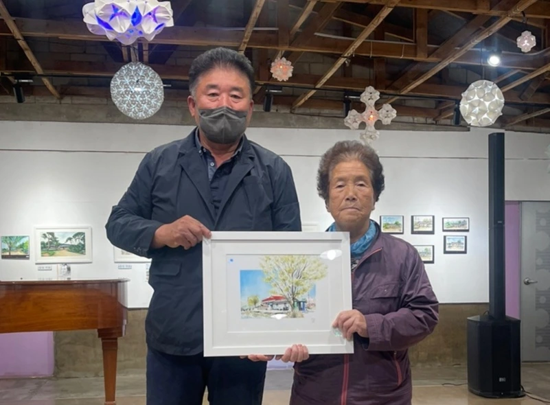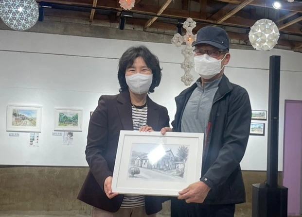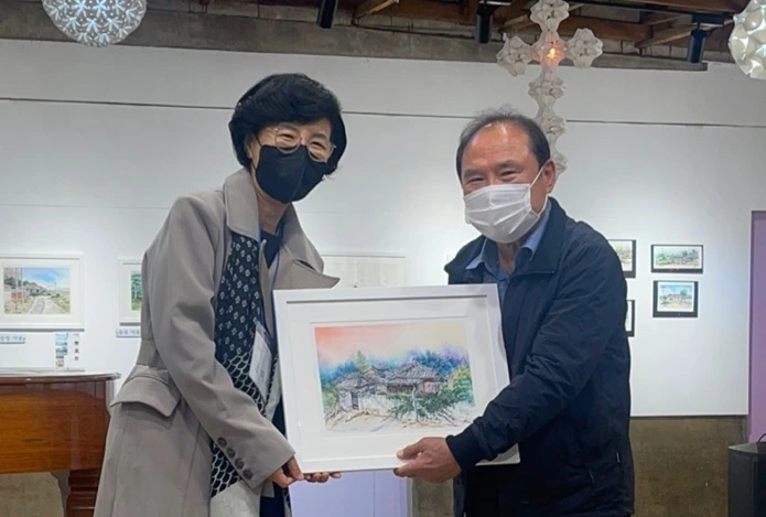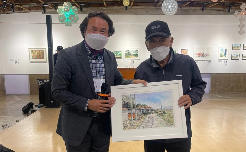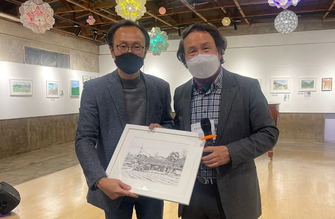 지난 토요일(22일), 2022 포천 드로잉축제의 일환으로 20명의 작가가 군내면 명산리 마을을 그려 마을 주민에게 증정하는 행사가 있었습니다. 그린 작품들은 모두 액자에 담아 일주일간 전시 후 그림과 직접 연관이 있는 주민들에게 작가가 작품을 증정하였습니다. 이한동 전 총리 댁과 울미숲 대표인 이한칠 회장을 비롯한 20 작품의 새로운 주인들이 작가들과 만나는 시간이었습니다. 이희민 명산리 이장이 일일이 마을 주민들을 불러 모아 작품을 설명해 주고 참석지 못한 주민들에게 대신 전달해 주는 수고를 해 주었습니다. 마을 주민들이 대부분 추수룰 하는 중이라 바빴지만 그 와중에도 작가에게서 직접 작품을 받는다는 기쁨에 대부분의 주민들이 일손을 멈추고 한걸음에 달려왔습니다. 내년에는 더 많은 지역주민들이 작가들과 만날 수 있는 기획이 이루어졌으면 좋겠습니다.