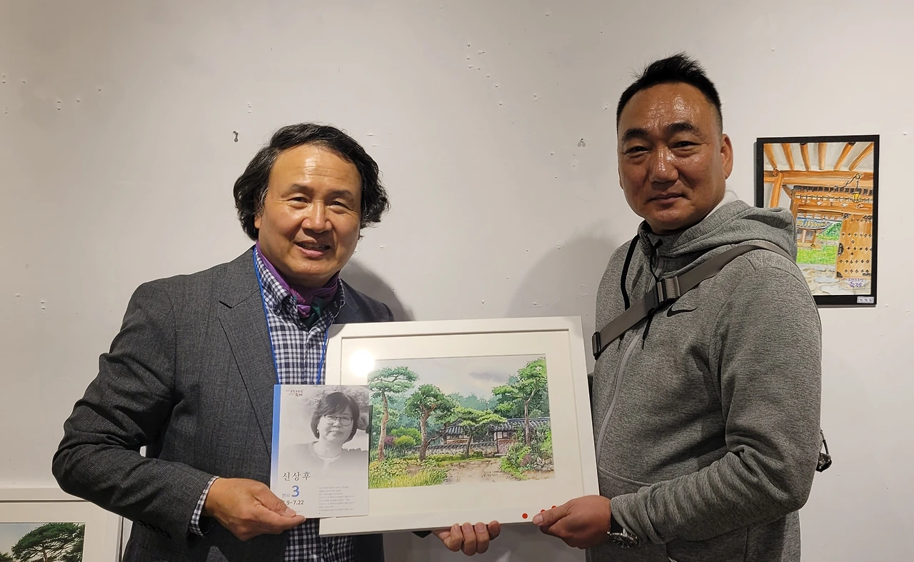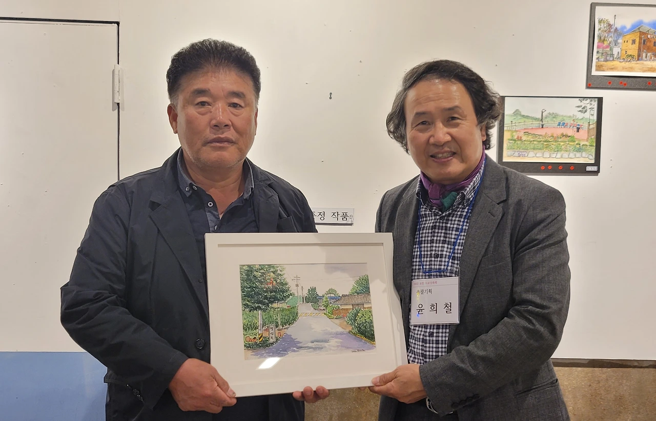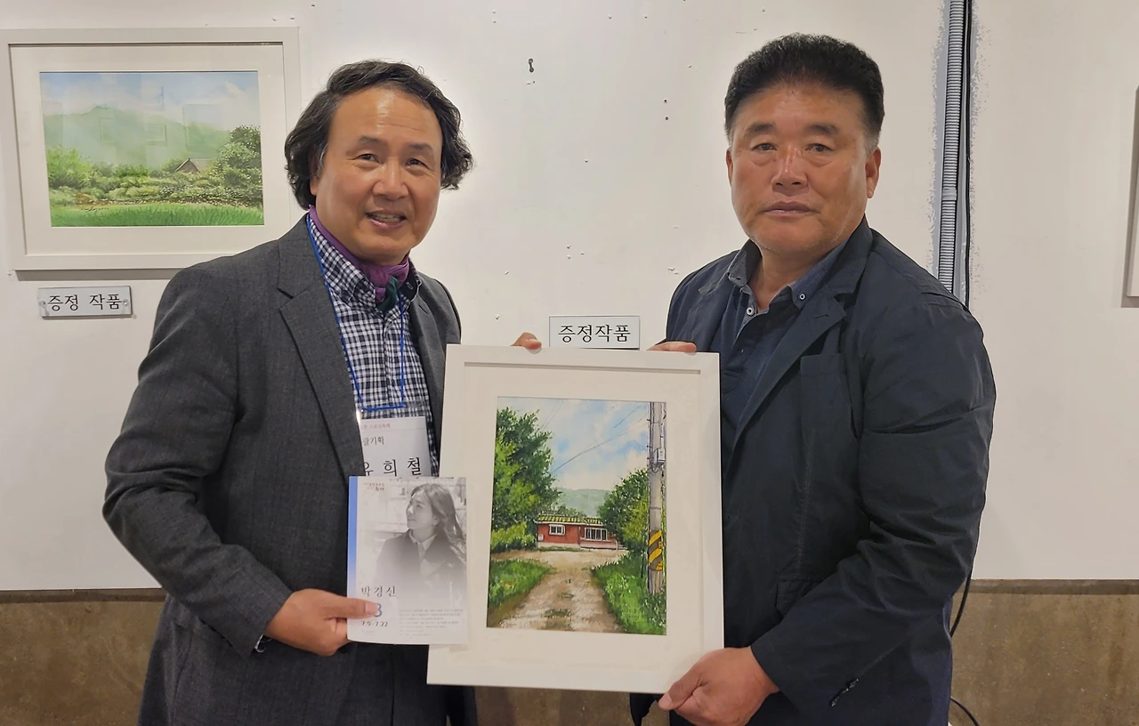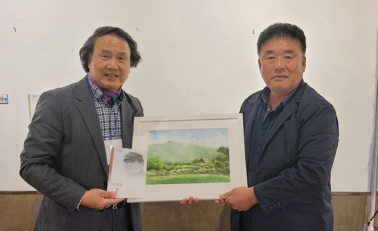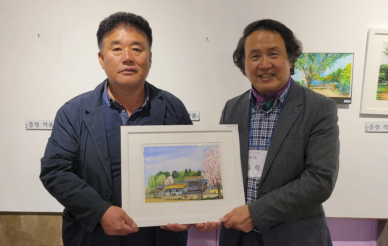 지난 토요일(22일), 2022 포천 드로잉축제의 일환으로 20명의 작가가 군내면 명산리 마을을 그려 마을 주민에게 증정하는 행사가 있었습니다. 그린 작품들은 모두 액자에 담아 일주일간 전시 후 그림과 직접 연관이 있는 주민들에게 작가가 작품을 증정하였습니다. 이한동 전 총리 댁과 울미숲 대표인 이한칠 회장을 비롯한 20 작품의 새로운 주인들이 작가들과 만나는 시간이었습니다. 이희민 명산리 이장이 일일이 마을 주민들을 불러 모아 작품을 설명해 주고 참석지 못한 주민들에게 대신 전달해 주는 수고를 해 주었습니다. 마을 주민들이 대부분 추수룰 하는 중이라 바빴지만 그 와중에도 작가에게서 직접 작품을 받는다는 기쁨에 대부분의 주민들이 일손을 멈추고 한걸음에 달려왔습니다. 내년에는 더 많은 지역주민들이 작가들과 만날 수 있는 기획이 이루어졌으면 좋겠습니다.