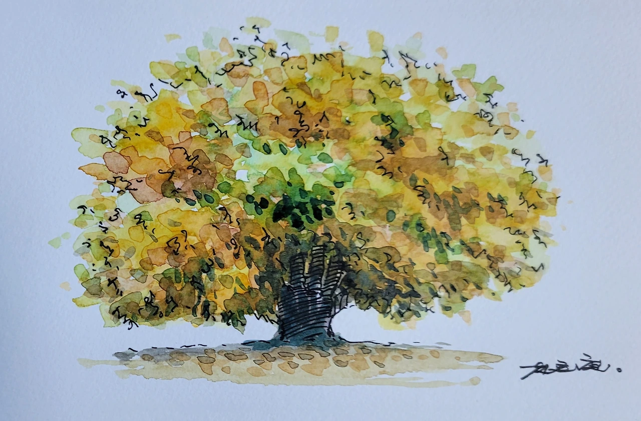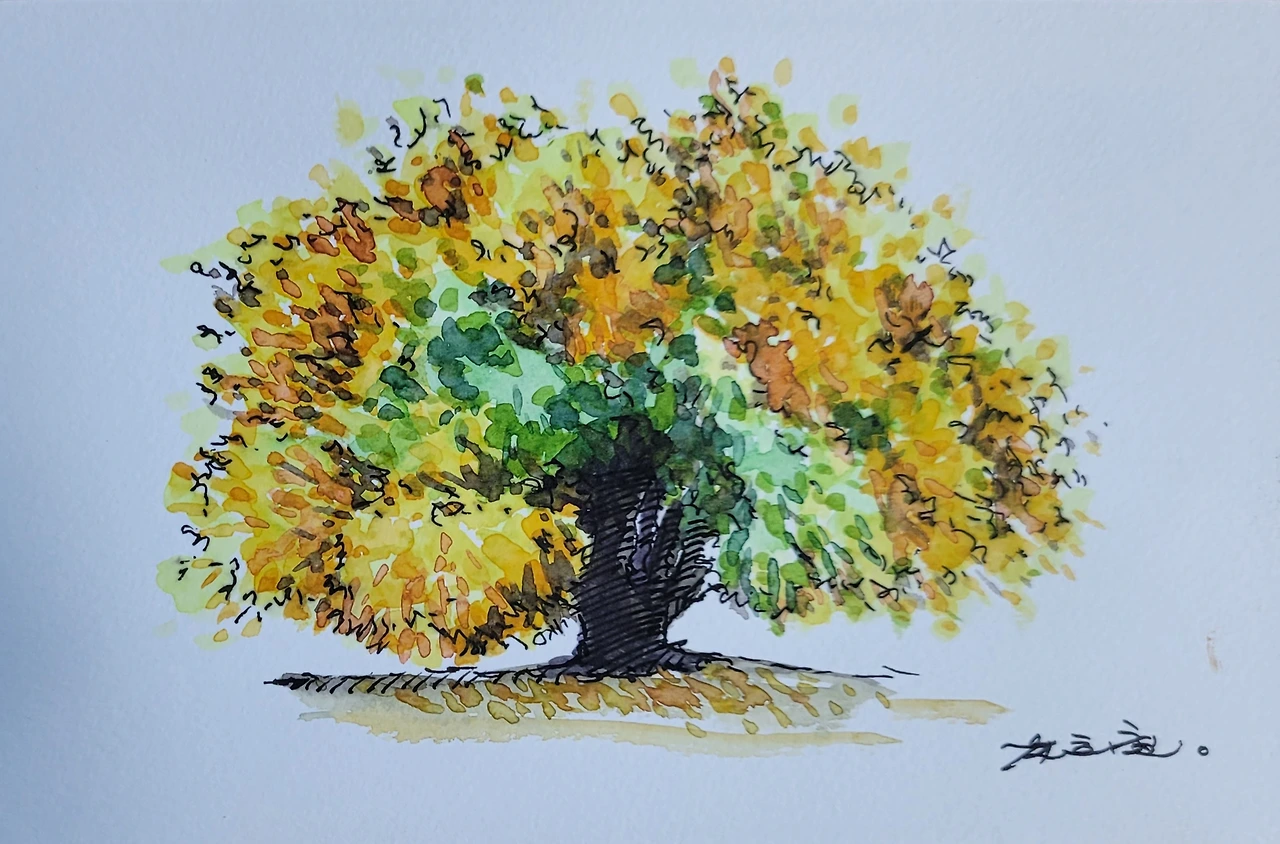 나무그리기 수업 지도하면서 시범으로 그려본 나무입니다. 같은 나무를 약간 다른 기법으로 표현해 봤습니다.
