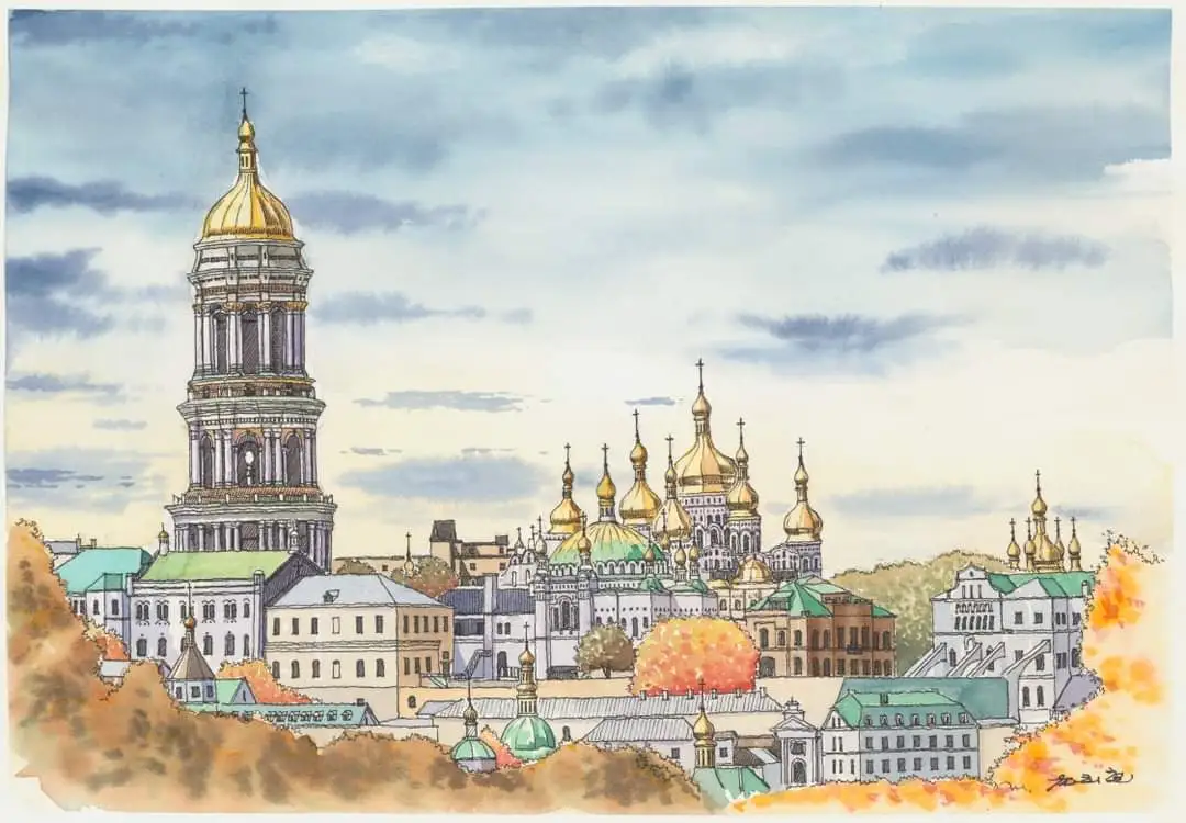 우연히 검색을 하다가 멋진 풍경에 시선이 멈췄다. 그런데 그곳이 우크라이나 수도 키이우에 있는 페체르스크 수도원이었다. 이 아름다운 곳이 전쟁중이라니. 우크라이나에 대한 안타까운 마음을 안고 그 아름다운 모습을 묘사해 보았다.