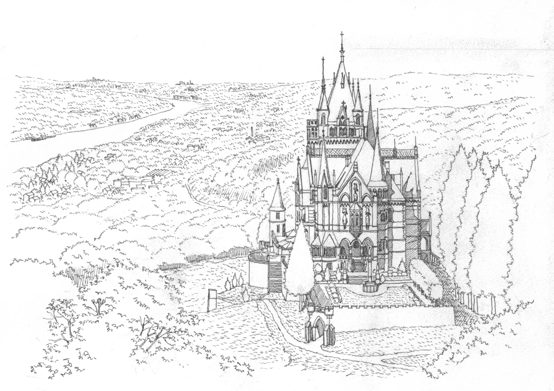 독일 쾰른 인근 쾨닉스빈터(Kὅnigswinter)에 자리하고 있는 이 성은 스테판 폰 자르터가 1882년에 시작하여 1884년에 고딕양식으로 완공한 성으로 라인강이 내려다보이는 언덕 위에 자리잡고 있다. 건물주는 독일에서 태어나 파리 증권가에서 주식으로 큰 돈을 벌고 수에즈 운하와 파나마 운하의 주주로도 상당한 재력을 가졌던 프랑스인이었다. 슐로스 드라헨부르크(Shloss Drachenburg)는 우리말로 ‘용(dragon)의 성 궁전’이라는 뜻인데 이 성이 있는 언덕 이름이 ‘용의 절벽(드라헨펠스, Drachenfels)에서 가져왔다고 한다. 독일 신화에는 용이 많이 등장하는데 이 용의 절벽 주변에는 용과 관련된 이야기들이 많다고 한다. 건물주는 이 성을 이렇게 멋지게 지어놓고는 여기서 거의 살지 않고 파리에서 지냈다 한다. 자식도 없이 죽어서 이 성은 소유권이 여러 사람들에게 넘어가기도 하고 2차 대전 때는 일부가 파괴되기도 하였다. 현재는 쾨닉스빈터 시에서 매입하여 관광지로 활용하여 시의 주요 수입원이 되고 있다.