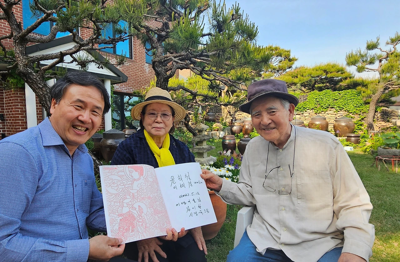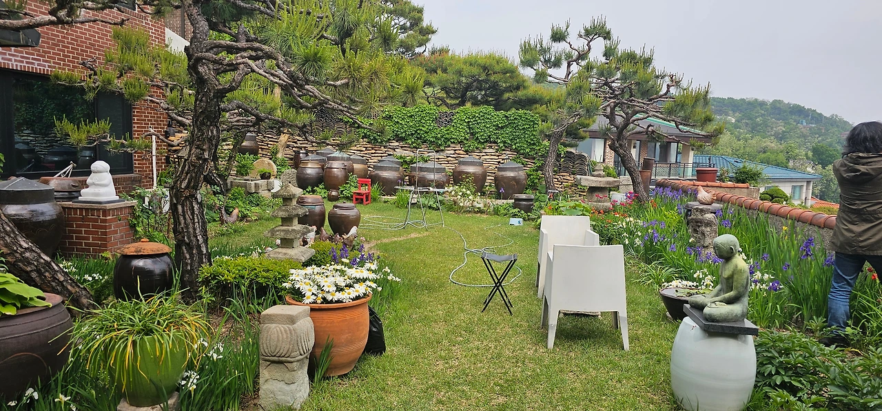 예술가들에 있어서 훌륭한 후원자를 만난다는 것은 여간 큰 축복이 아닐 수 없다. 한국 현대미술사에 있어 큰 획을 그었던 박생광과 전혁림에게 있어서 김이환, 신영숙 부부와의 만남이 그 경우다. 수십년간 두 작가를 뒷바라지 하면서 국내외 굵직 굵직한 전시회를 기획하고 모든 후원을 도맡아 주어 두 작가가 세상을 떠날 때까지 작품에 몰두할 수 있게 해 준 분들이다. 부부의 중간 이름을 따서 이름지은 용인의 이영미술관은 두 작가의 대표작들을 비롯한 많은 작가들의 꿈의 무대가 되어 왔다. 돼지 축사를 리모델링하여 미술관을 시작하여 새로 이전한 곳에서 오랫동안 다양한 전시회를 추진해 왔던 용인미술관은 문을 닫게 되었다. 김이환 관장은 용인에 미술관을 운영해 올 때부터 서울 성북동 집에서 매일같이 출퇴근 해 왔다. 용인 미술관을 정리한 지금은 박생광, 전혁림 두 작가 외에 그동안 컬렉팅 해 온 많은 작품들을 성북동 집을 갤러리로 리모델링하여 곧 재개관을 앞두고 있다. 한국현대미술에 있어서 큰 족적을 남기고 계시는 두 분의 성북동 자택 정원에서 김이환 관장께서 박생광 화집을 내게 선물하시는 모습을 올려 본다.