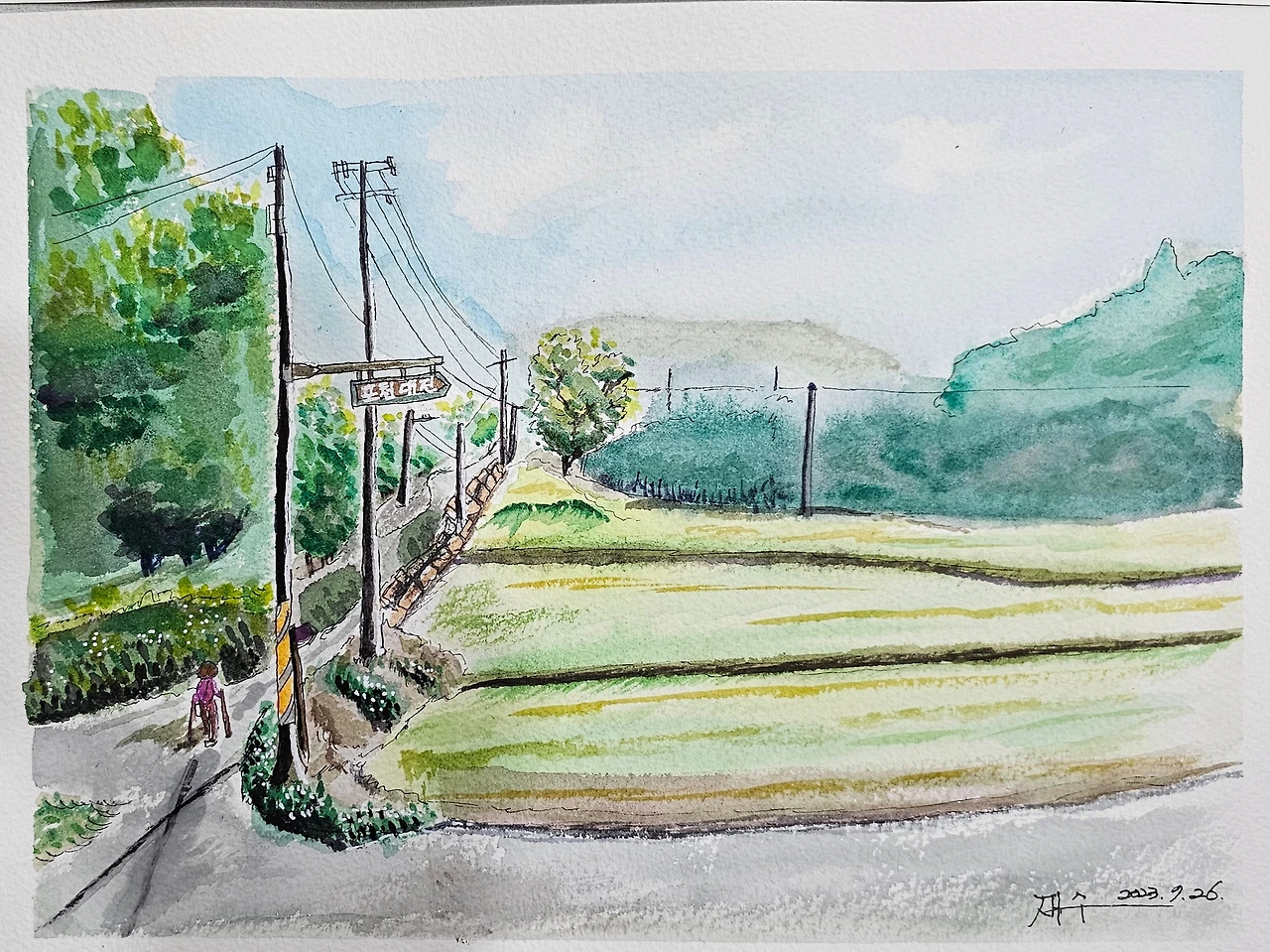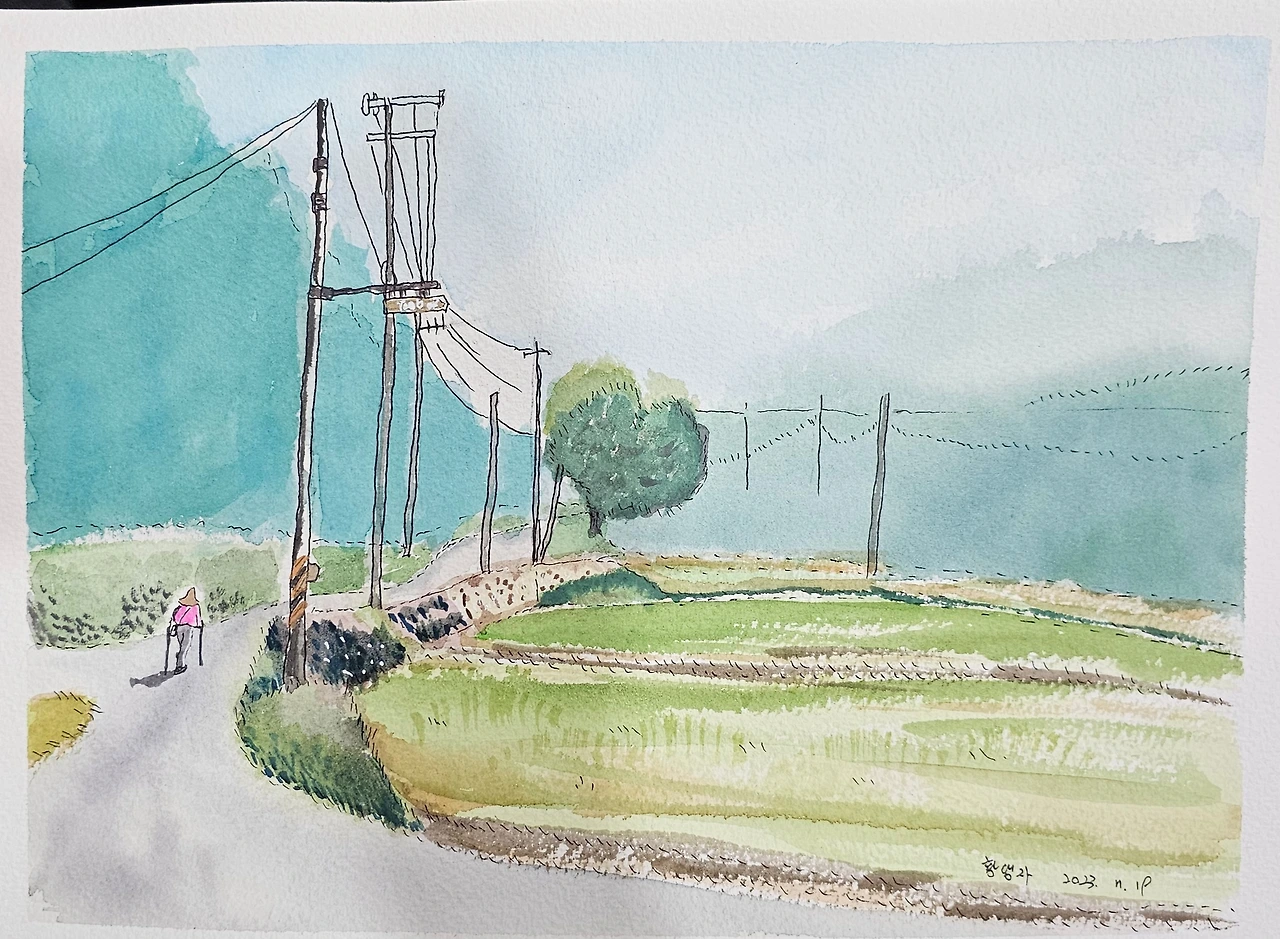 대진대학교 평생교육원 <여행 드로잉>강좌 8주차 과제로 전원풍경을 그려봤습니다. 수강생들 작품들을 올려봅니다.