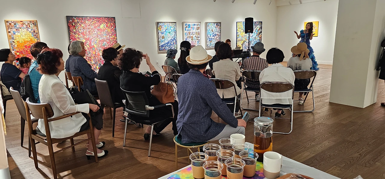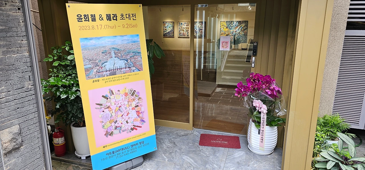 지난 8.17(목) 아트불(ARTBULL) 청담 갤러리 초대전 오픈식에서 반월오페라단 김은정 단장의 반주에 맞추어 소프라노 김보영, 백현애, 정선화 세 분과 제가 작은 음악회를 진행하였습니다. 소프라노 김보영 씨의 <오 솔레 미오>, 소프라노 백현애 씨의 최숙영 시/ 임긍수 곡 <파랑새의 꿈>, 제가 허림 시/윤학준 곡 <마중>, 소프라노 정선화 교수가 이은상 시/김동진 곡 <가고파>를 불렀습니다. 마지막 곡으로 관객들과 함께 연주자 모두가 운용하 곡 <보리밭>을 불러 미술과 음악의 콜라보를 연출해봤습니다. 윤희철 &혜라 초대전은 오는 9.2(토)까지 이어집니다.