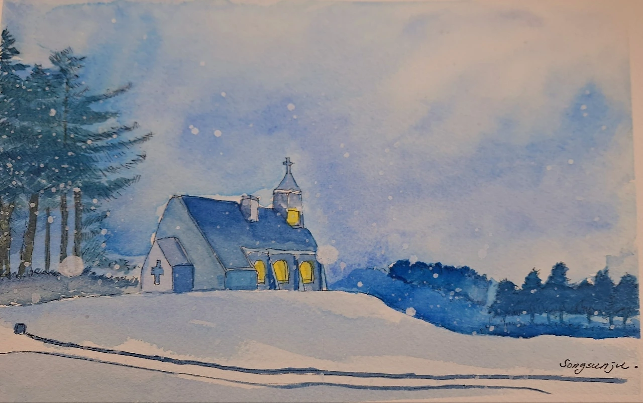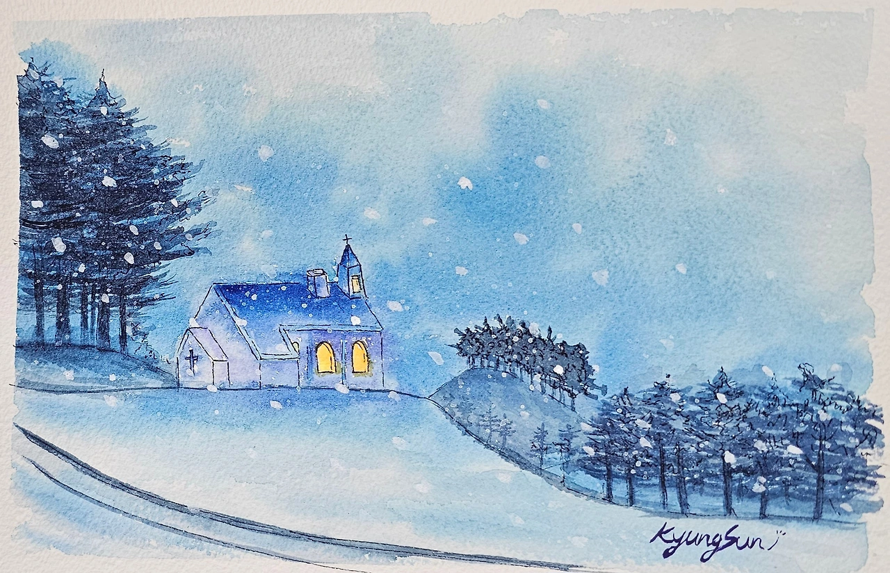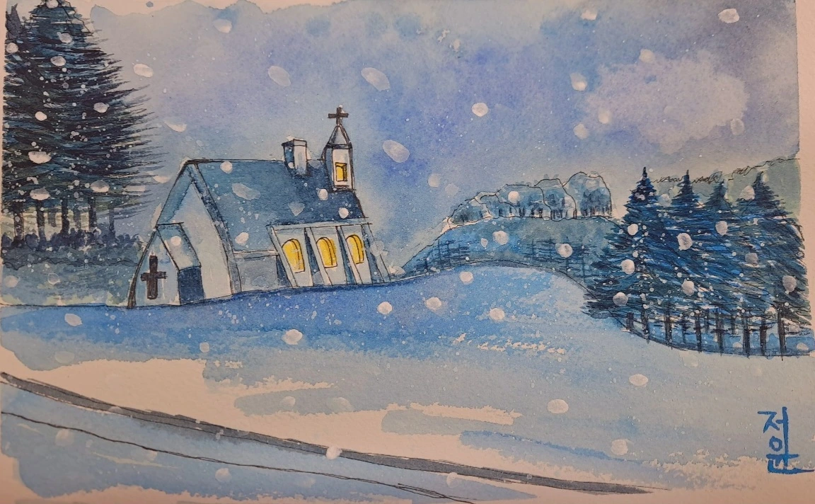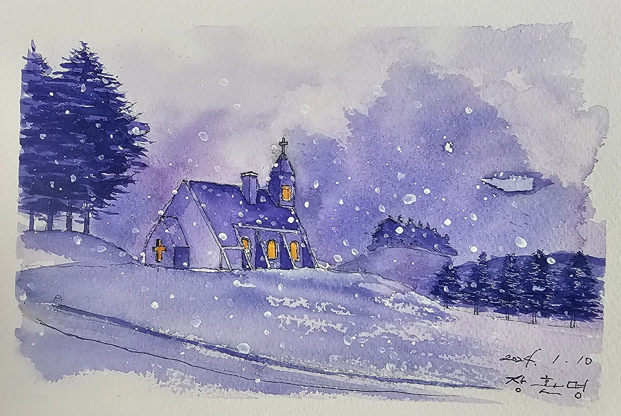 어제도 많은 눈이 내렸습니다. 폭설로 수요일에 있는 평생교육원 드로잉 강좌를 휴강했습니다. 앞시간에 수업 과제로 그렸던 대관령에 있는 실버벨 교회의 눈내리는 야경의 수강생들 작품이 대충 들어와서 올려봅니다.
