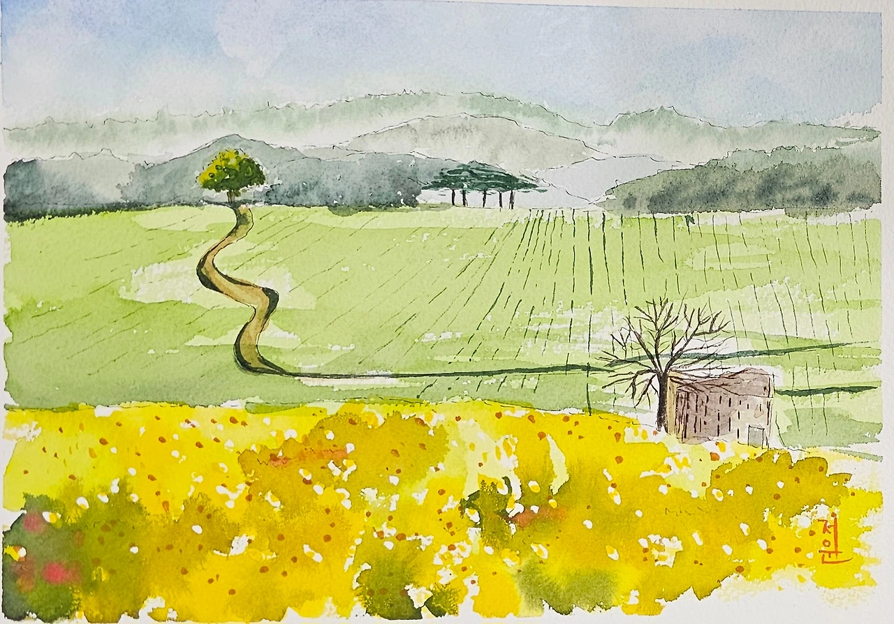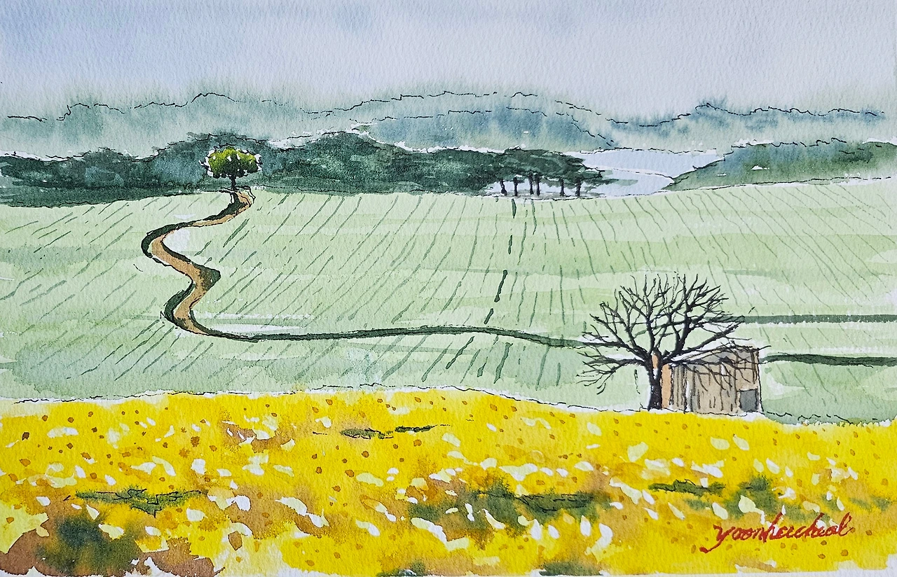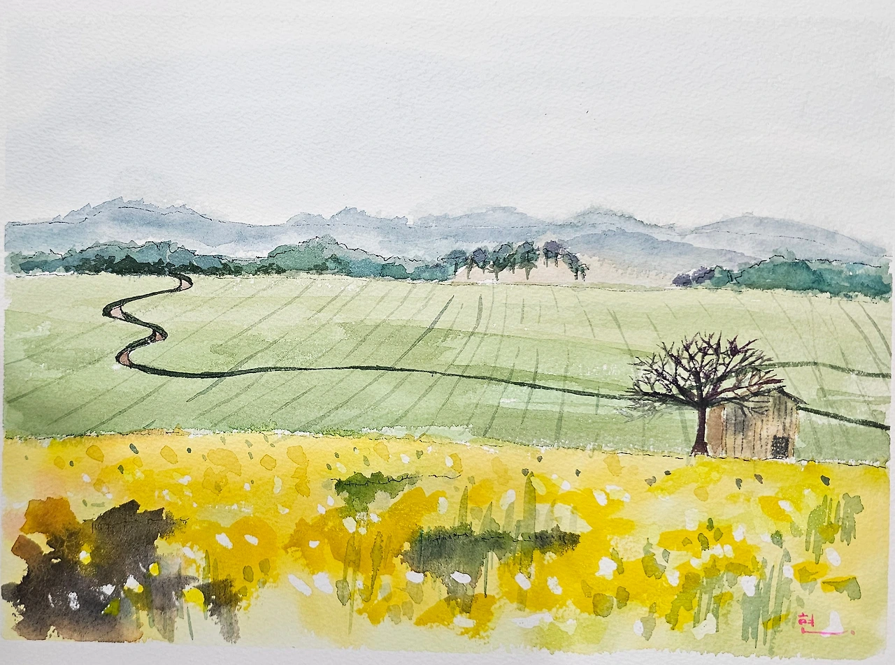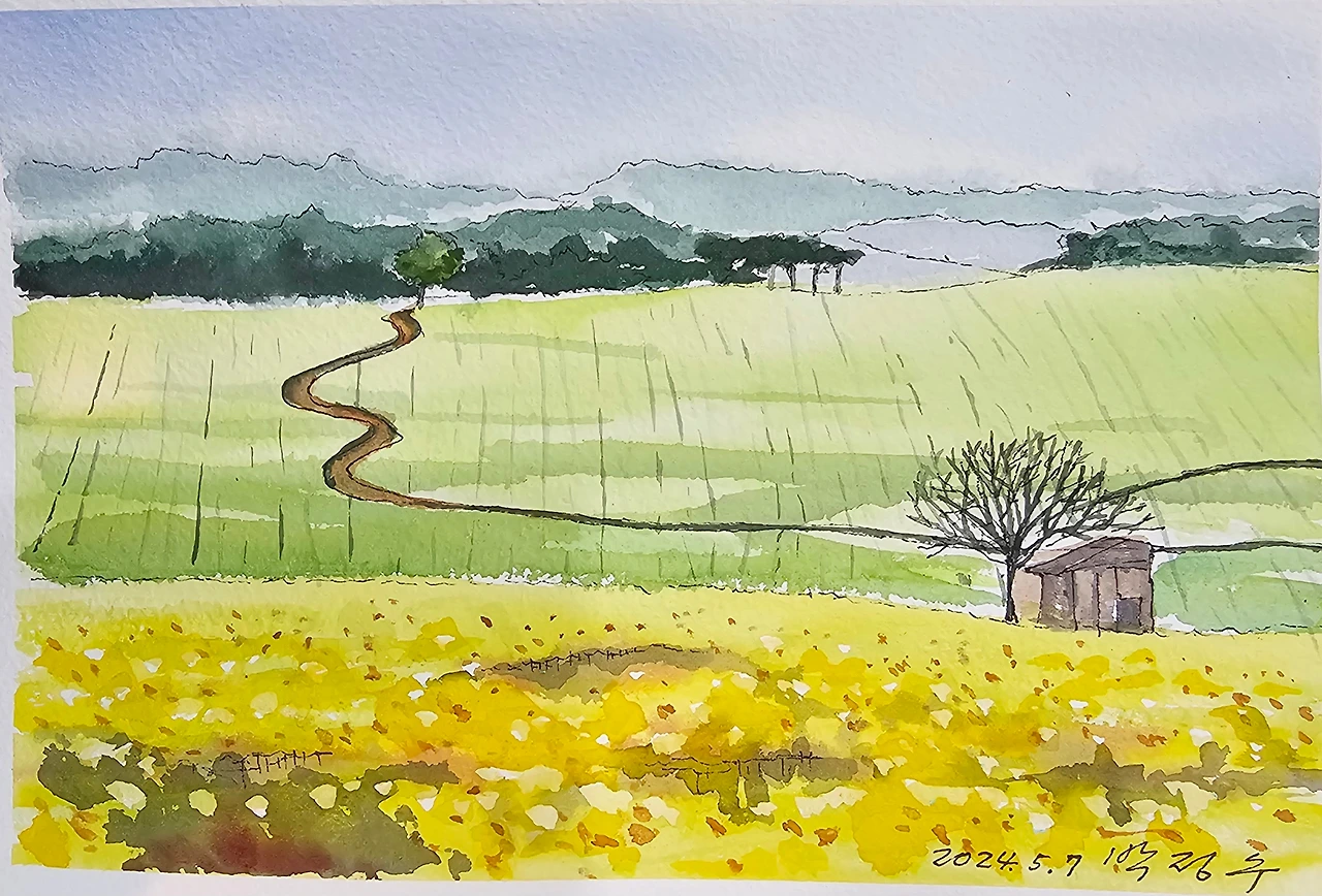 평생교육원 수강생들 작품입니다. 고창의 유채꽃과 청보리 밭 풍경을 그려봤습니다.