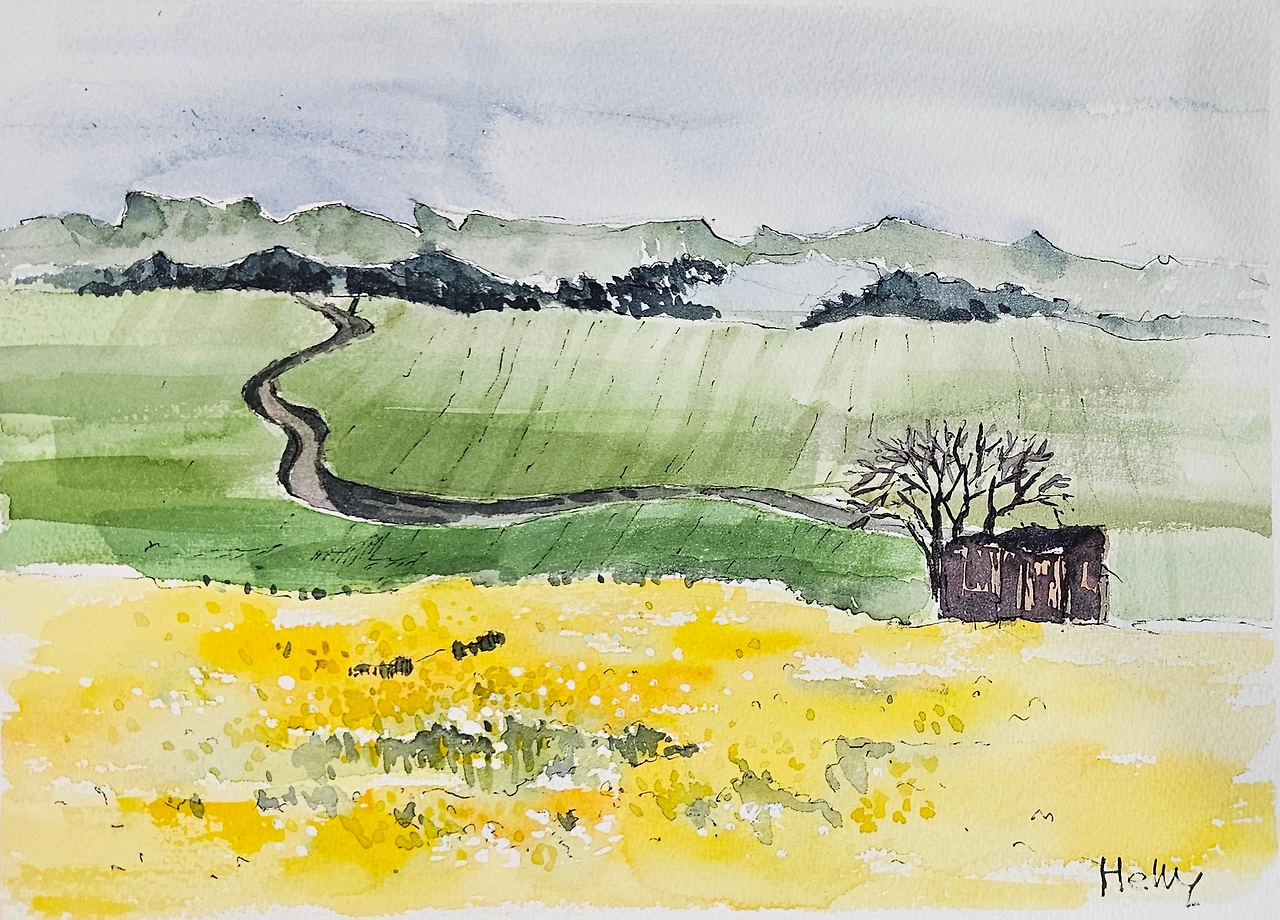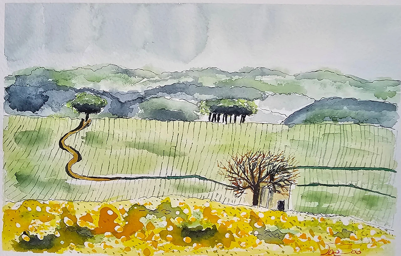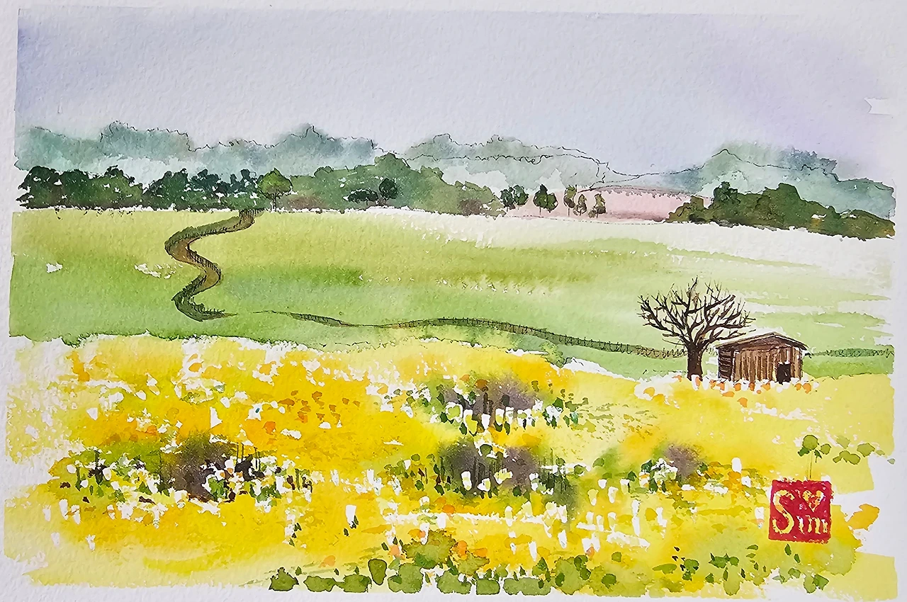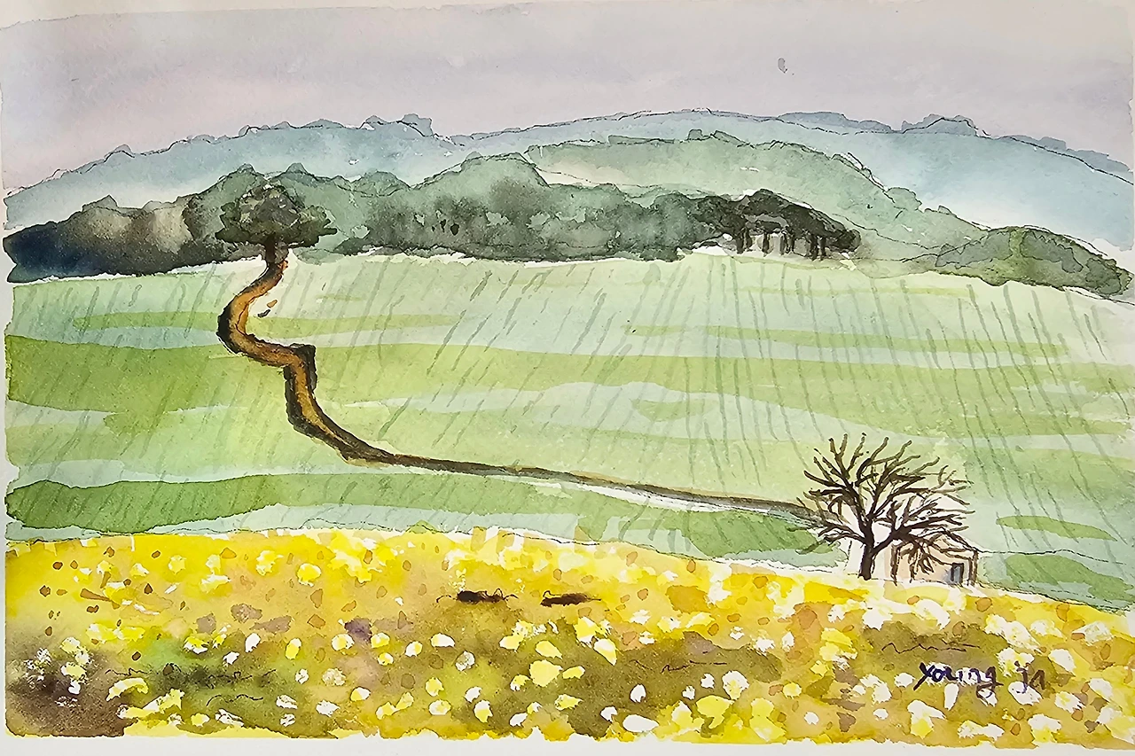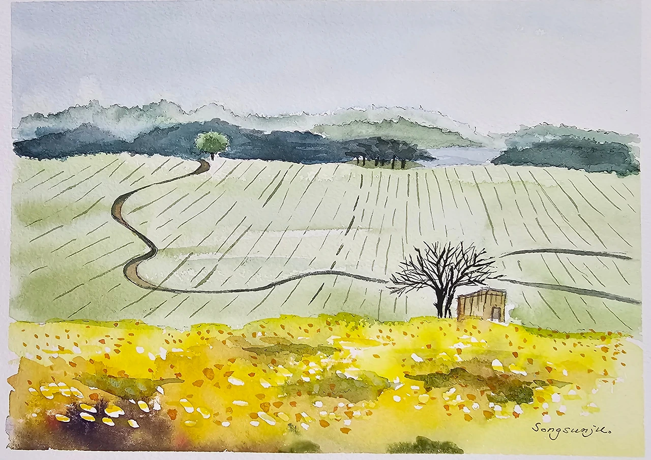 평생교육원 수강생들 작품입니다. 고창의 유채꽃과 청보리 밭 풍경을 그려봤습니다.