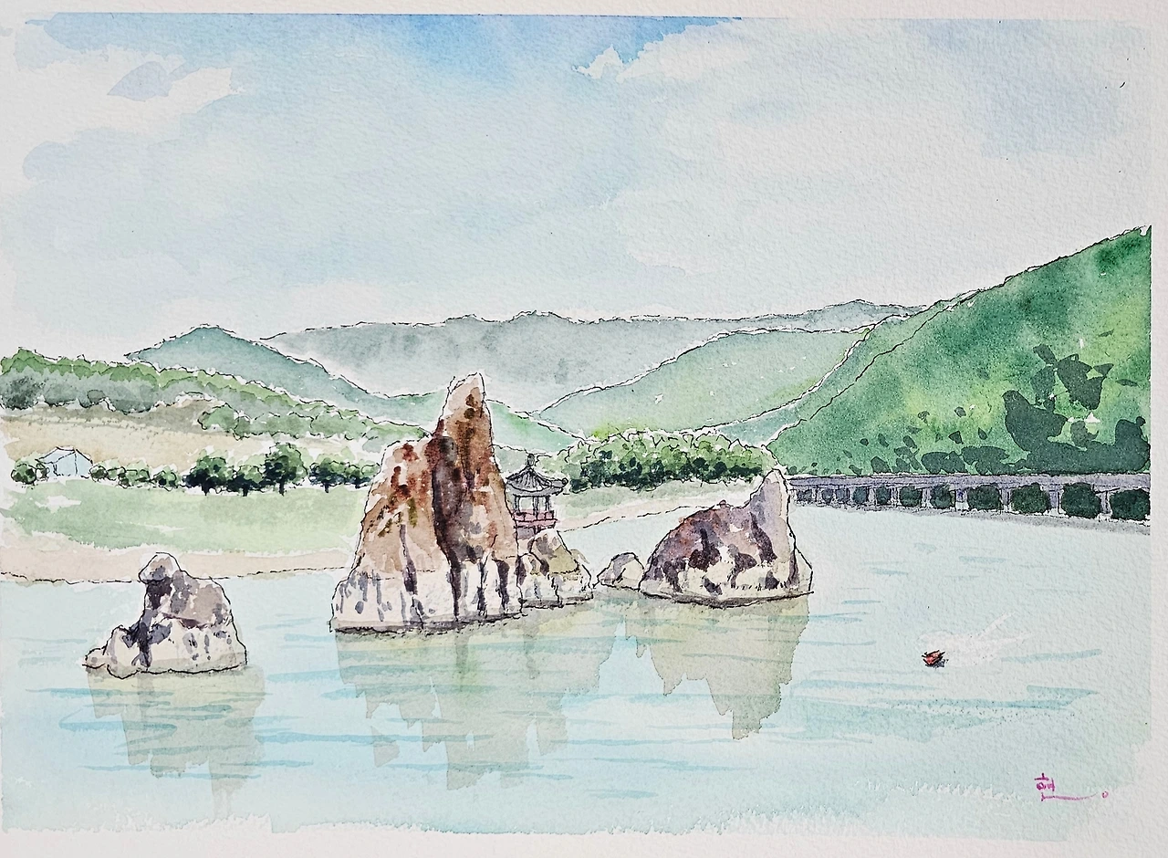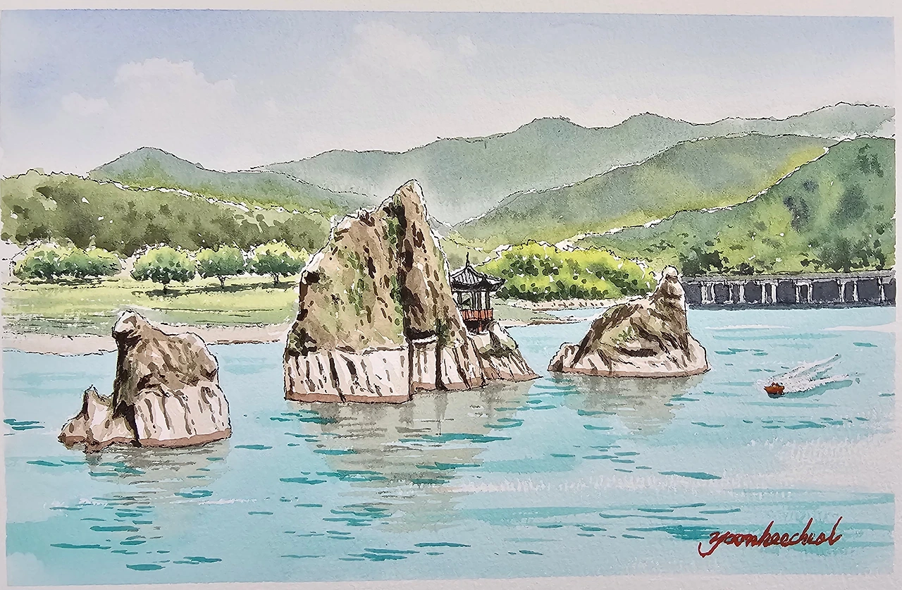 평생교육원 여름학기 첫 과제로 단양의 도담삼봉을 그려봤습니다. 수강생들과 제 작품을 올려봅니다.