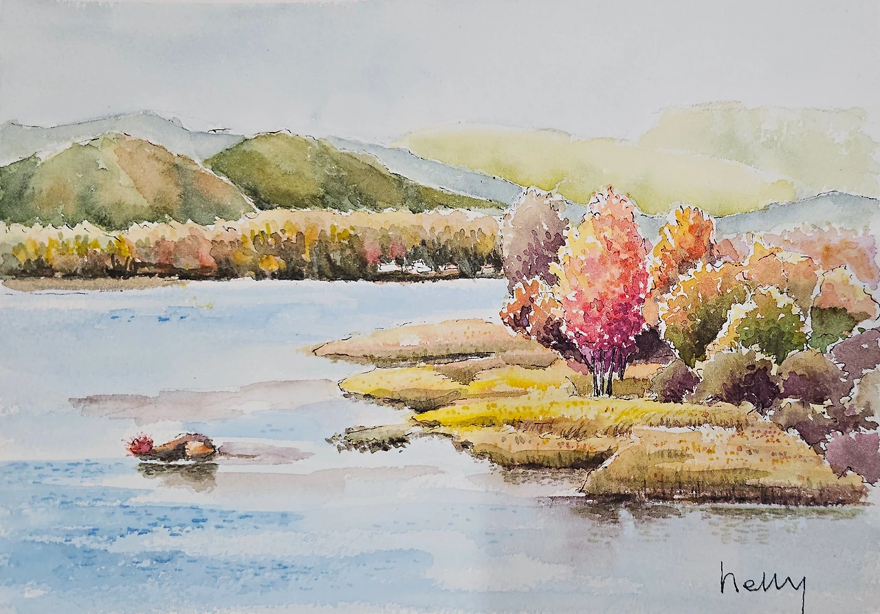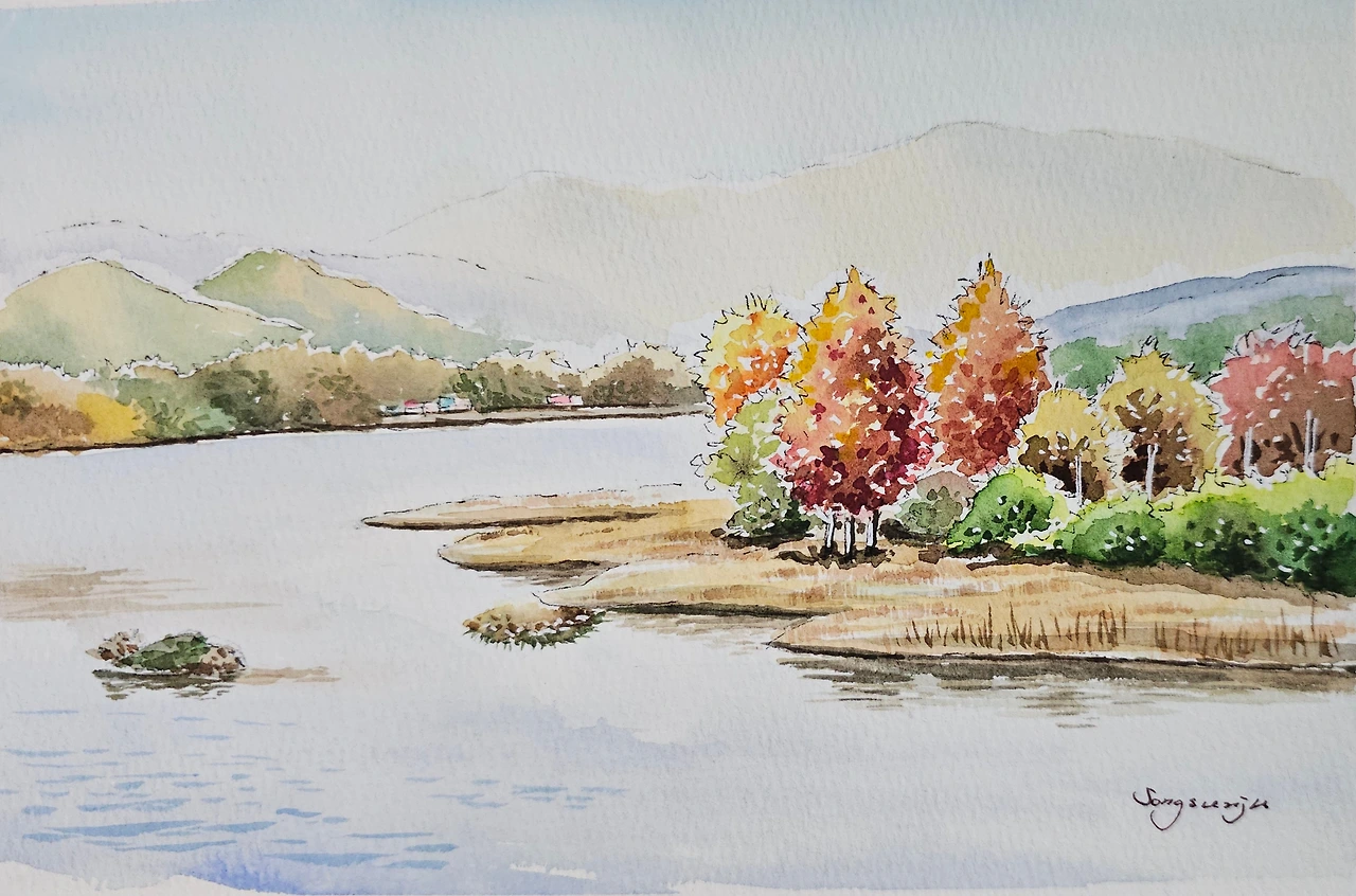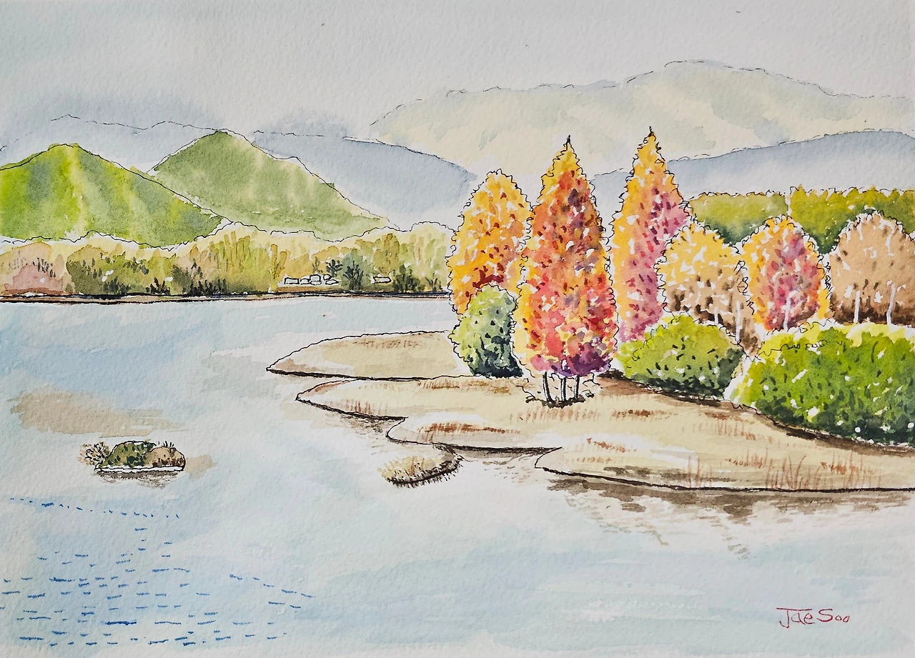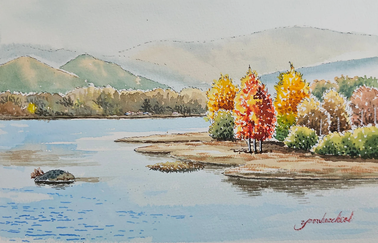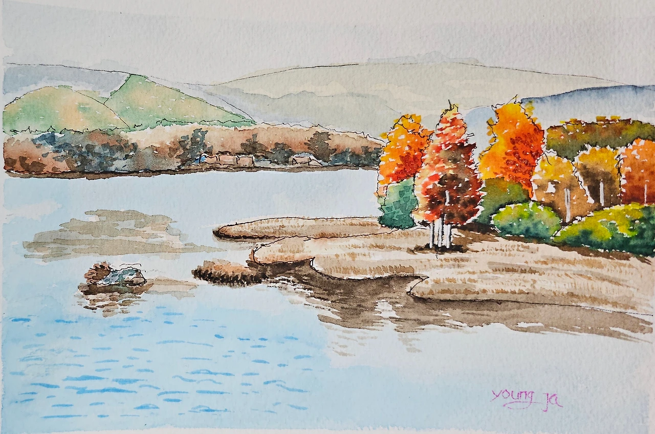 평생교육원 드로잉강좌의 가을 풍경으로 의암호의 가을풍경을 수강생들과 함께 그려 보았습니다.