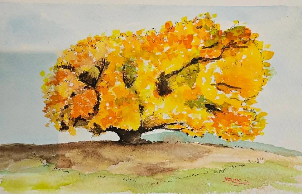 문막 반계리 은행나무를 평생교육원 수강생들과 함께 그려 보았습니다.